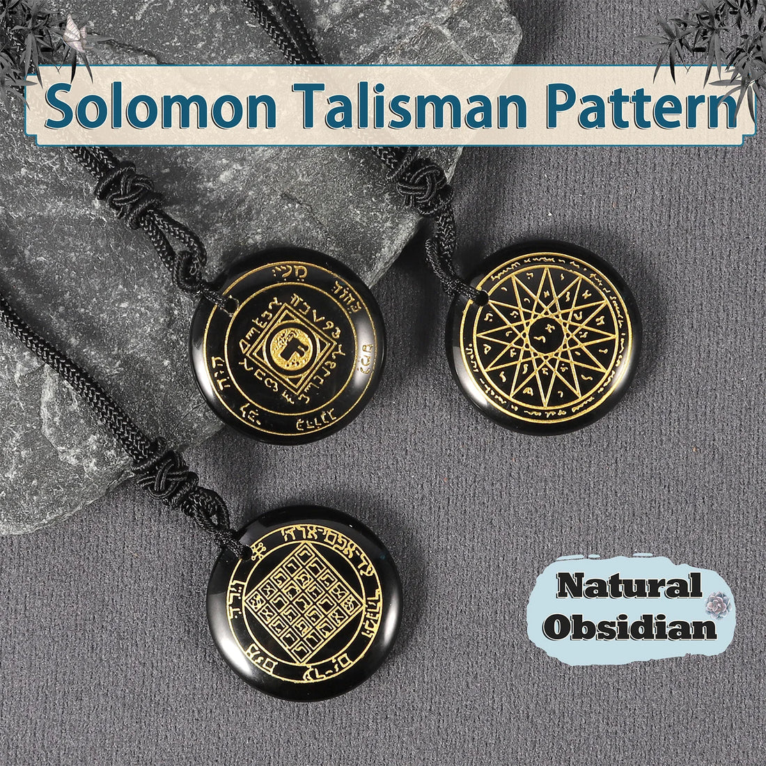Natural Obsidian Carved Solomon Auspicious Talisman Pendants Lucky Bringing Wealth Love Religious Spirit Belief Jewelry Necklace