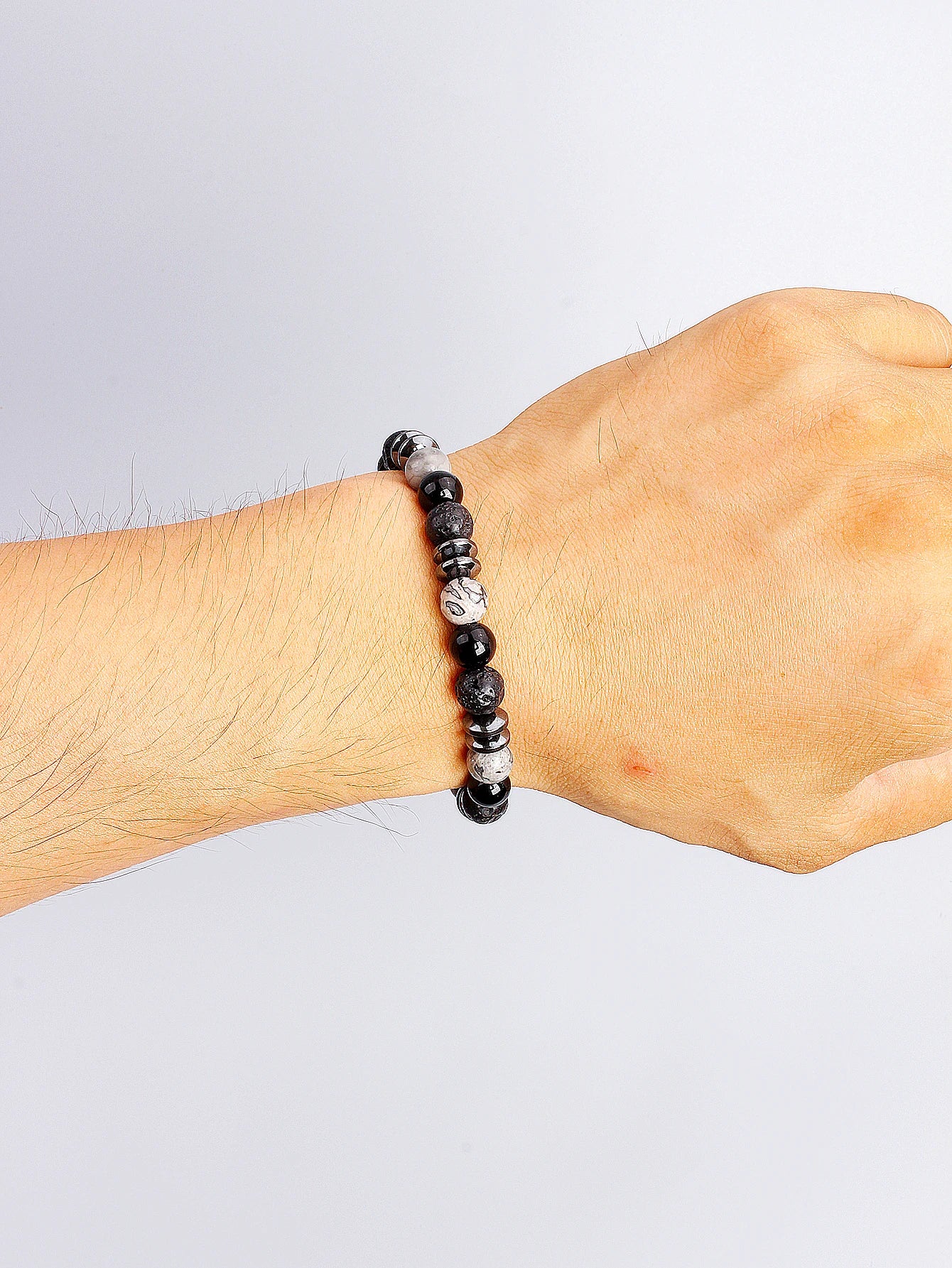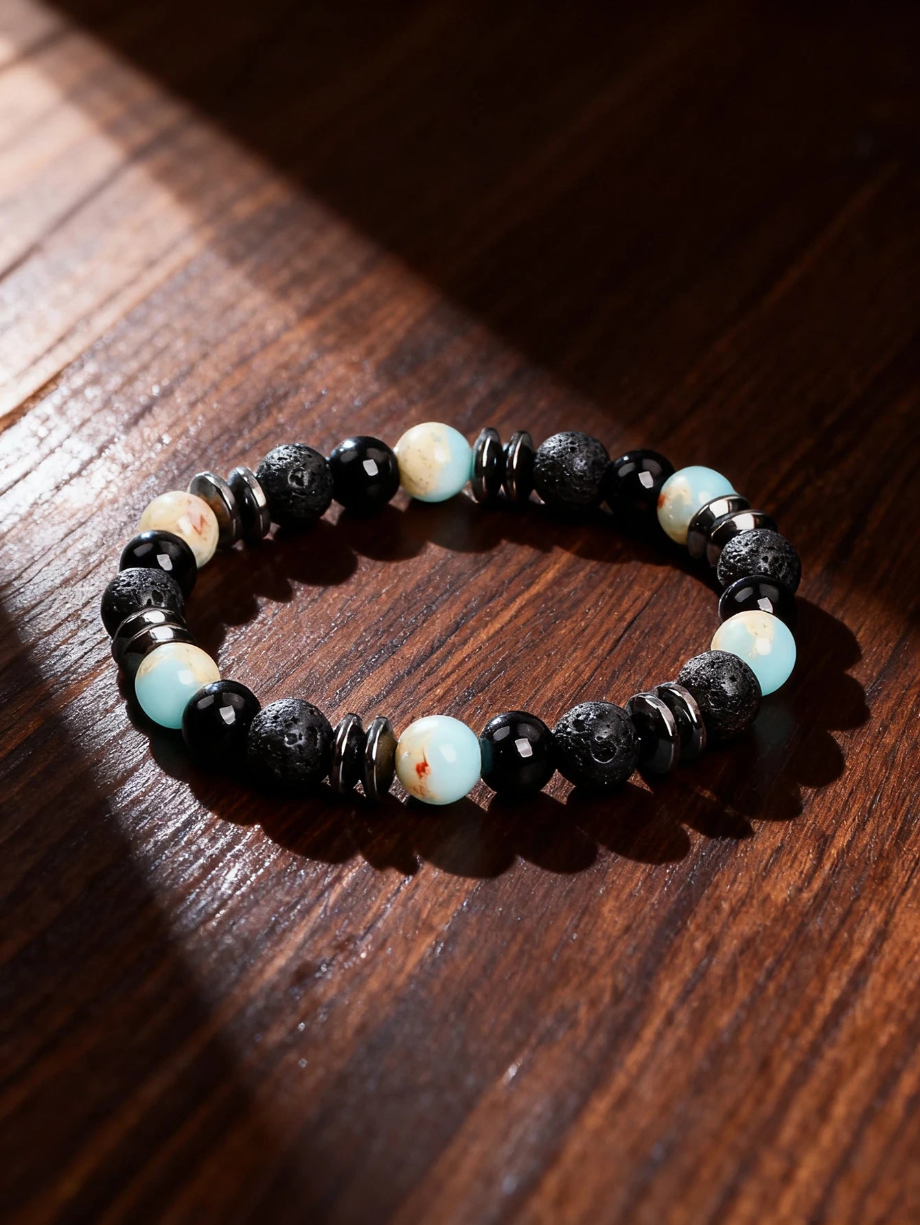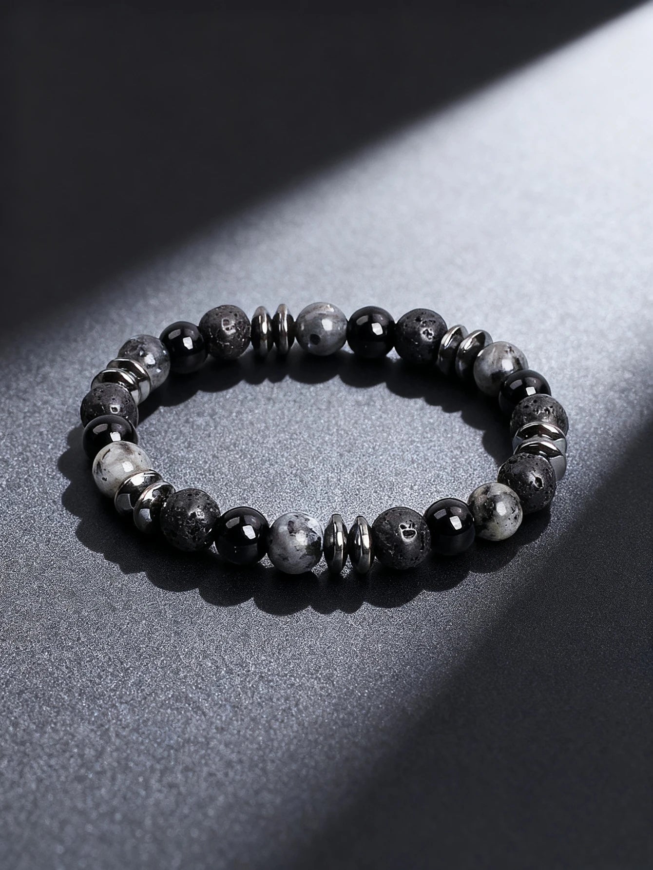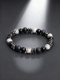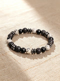 Natural Stone Beaded Bracelet with Map Stone Onyx Lava Beads for Energy Reiki Healing Charm Protection Spiritual Unisex Jewelry