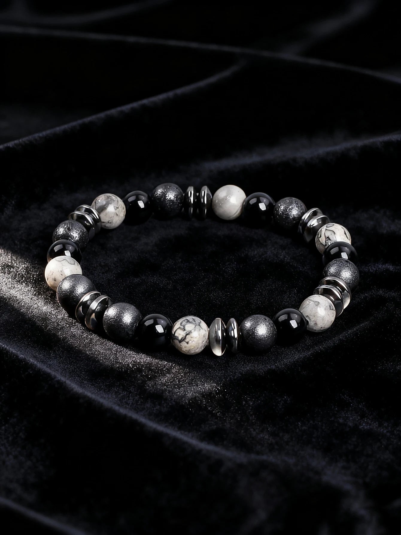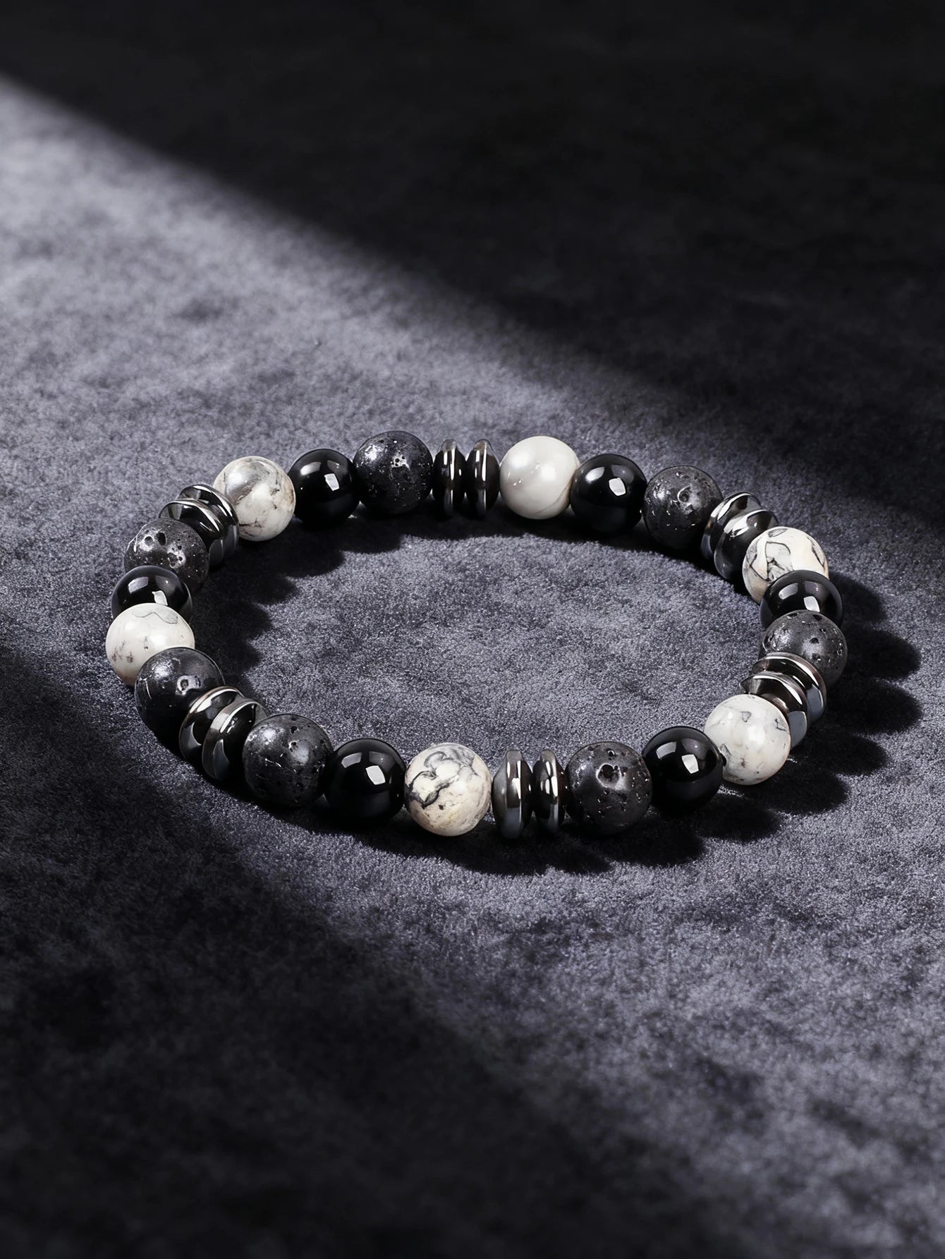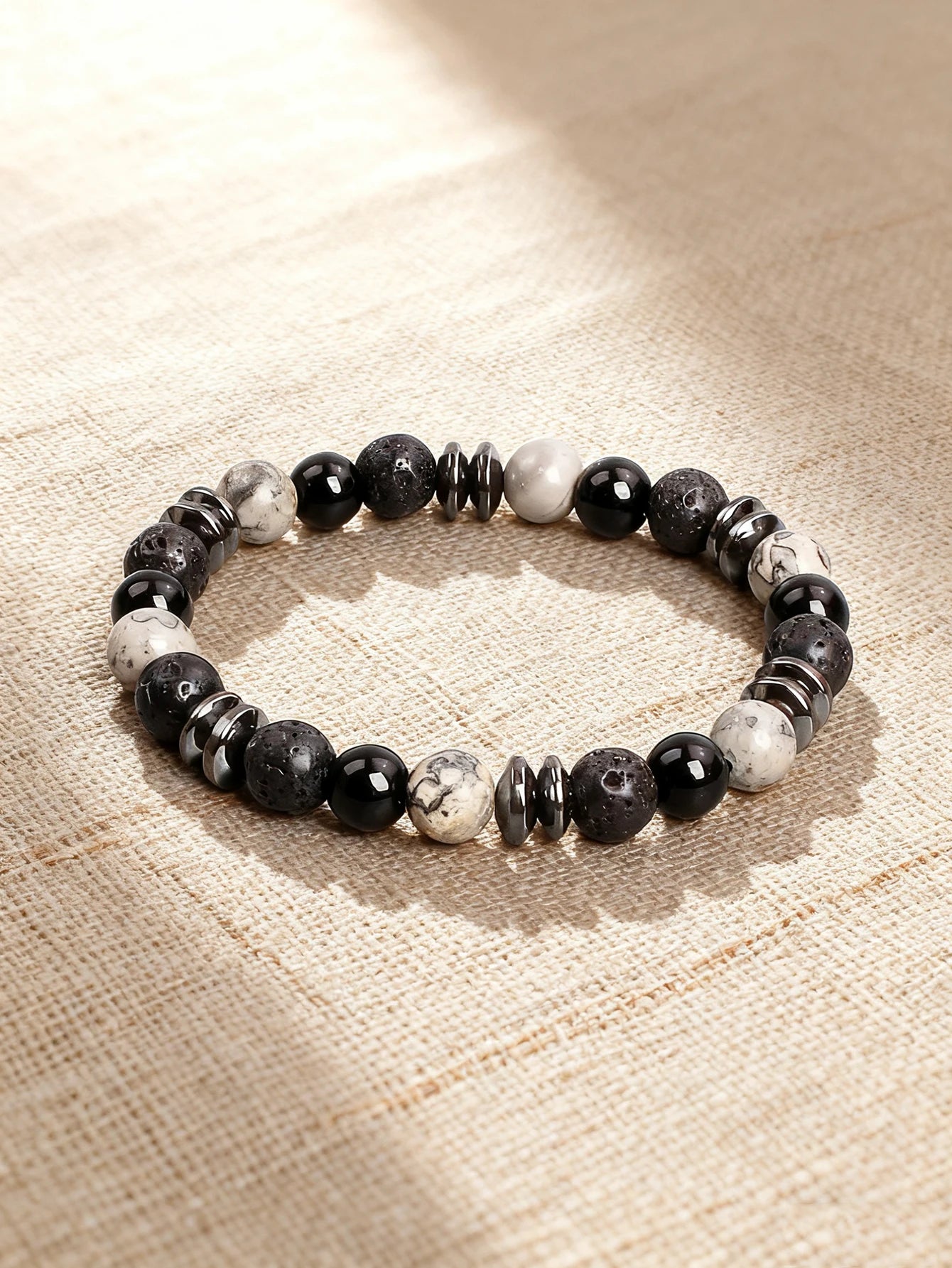 Natural Stone Beaded Bracelet with Map Stone Onyx Lava Beads for Energy Reiki Healing Charm Protection Spiritual Unisex Jewelry