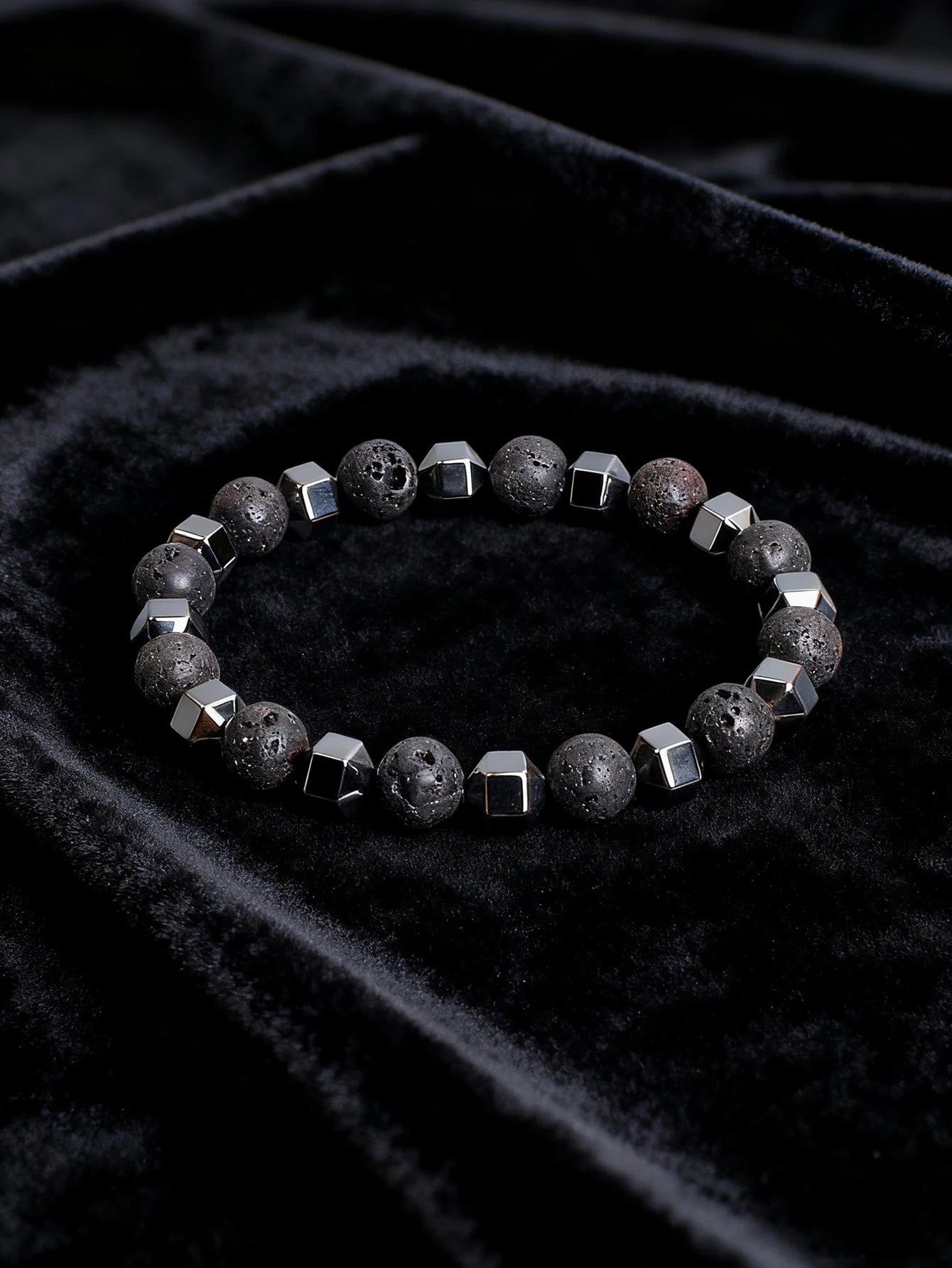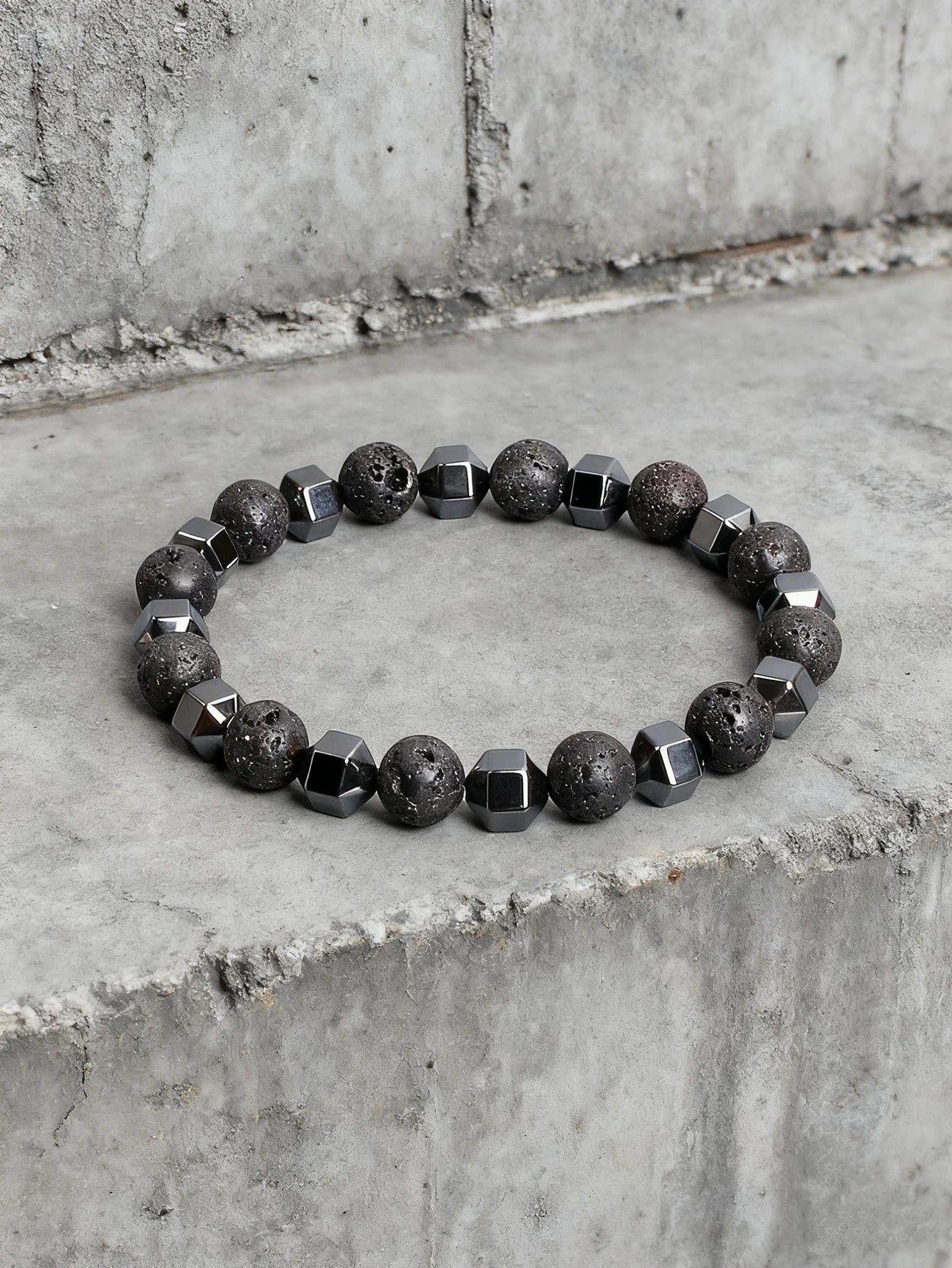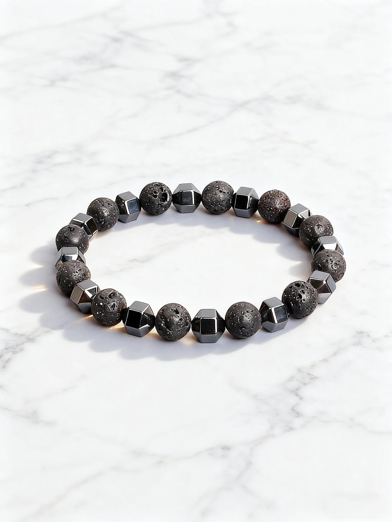 Natural Stone Bracelet with Lava Rock Volcanic Stone and Faceted Hematite Bead for Vigour Protection Grounding & Courage Jewelry
