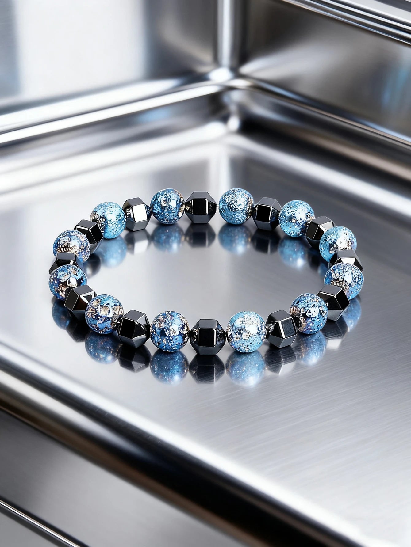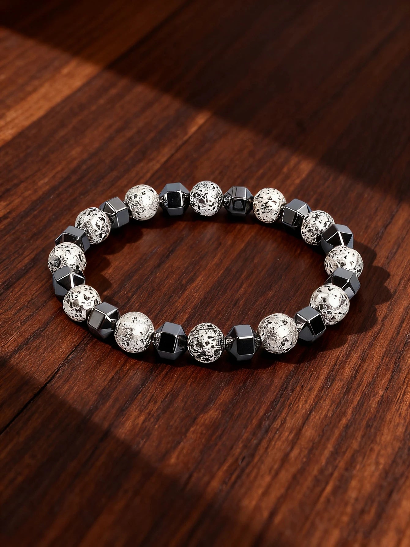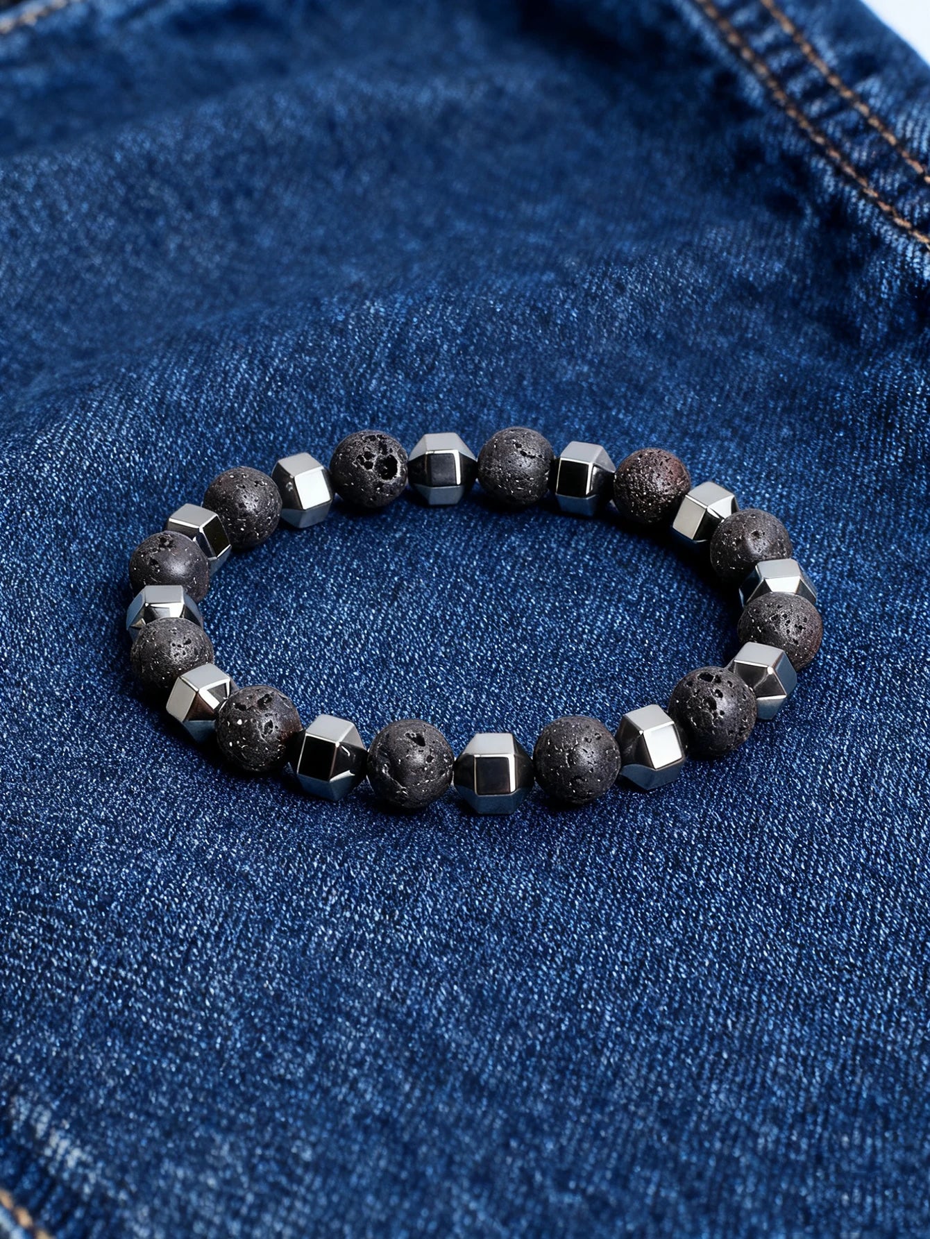 Natural Stone Bracelet with Lava Rock Volcanic Stone and Faceted Hematite Bead for Vigour Protection Grounding & Courage Jewelry