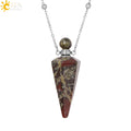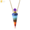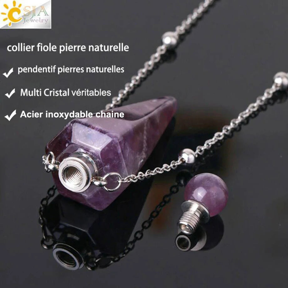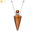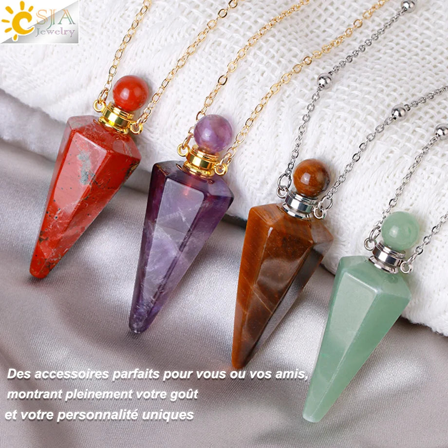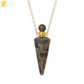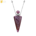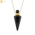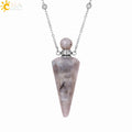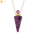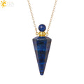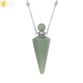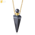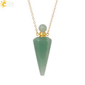 Natural Stone Cone Perfume Bottle necklace Healing Clear Quartz Crystal Pendant Reiki Essentials Oil Diffuser Vial Necklace H119