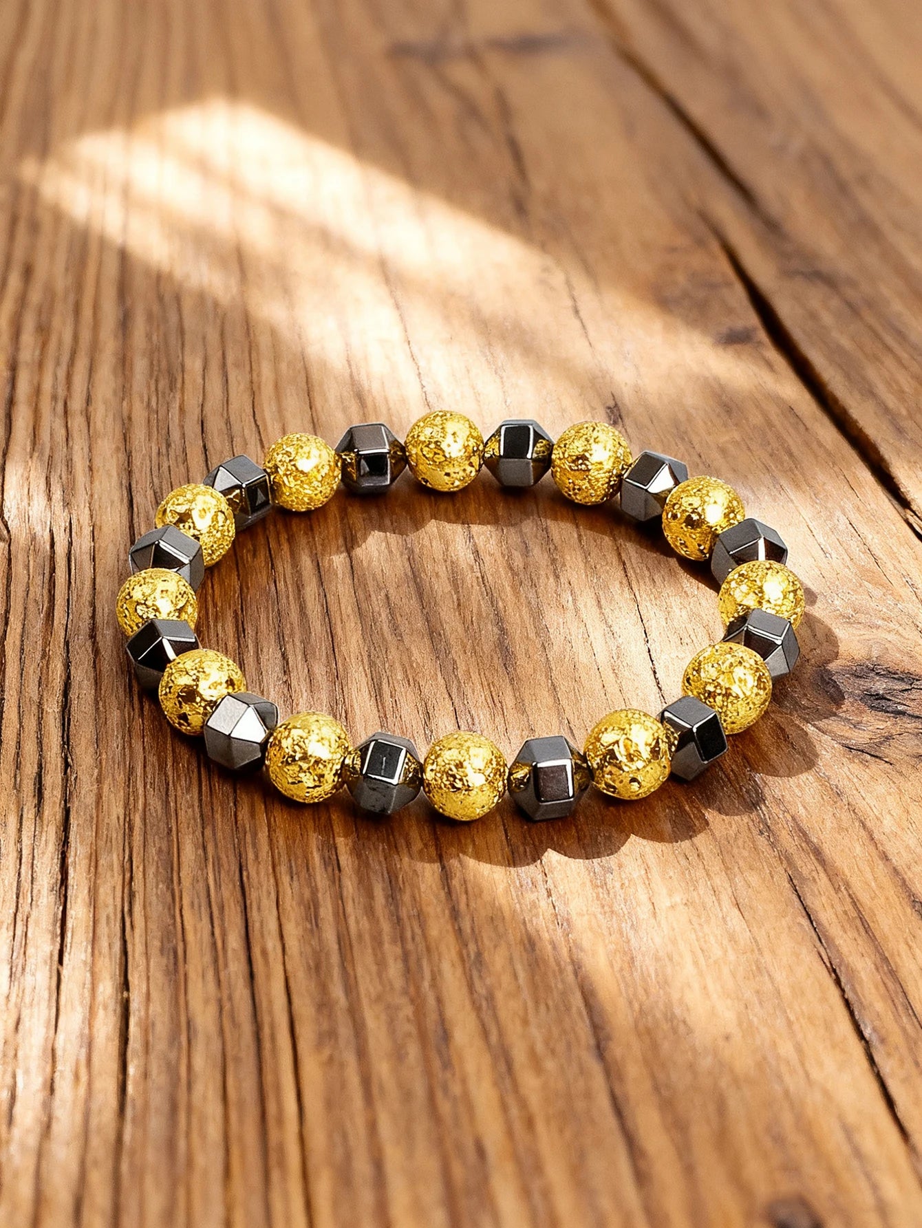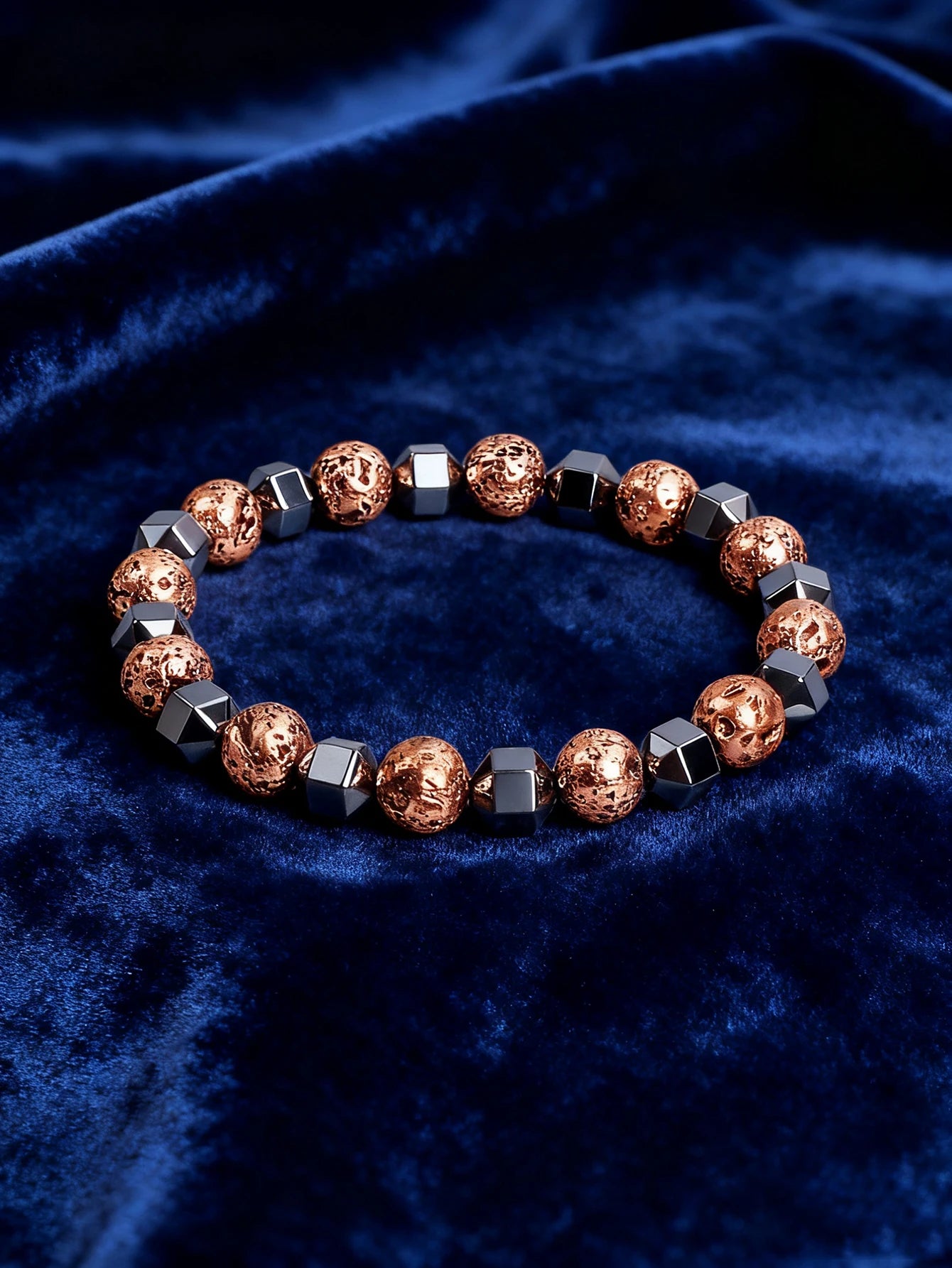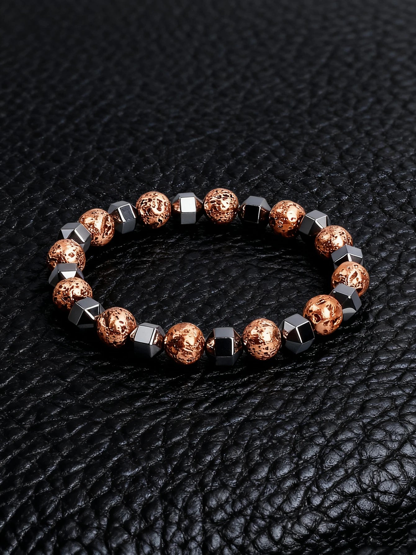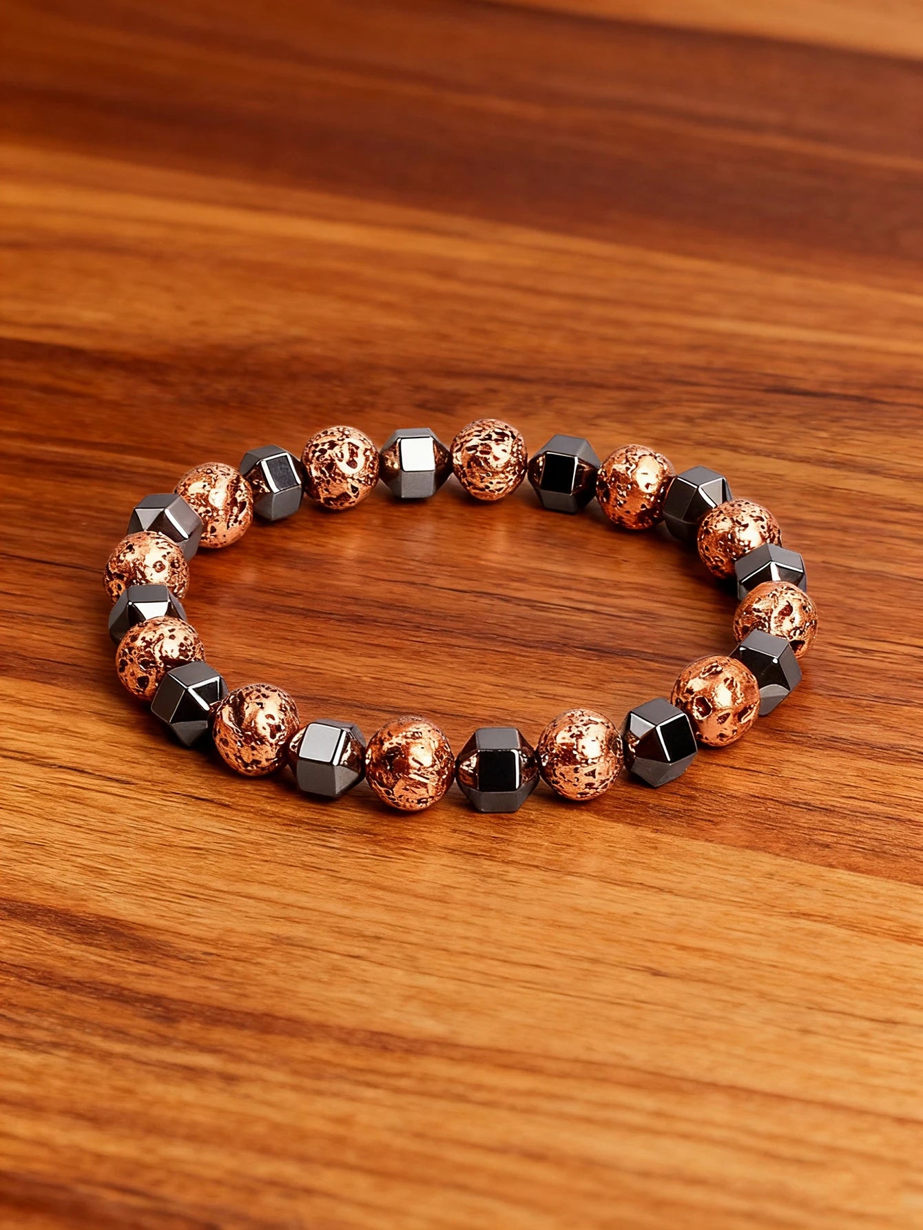 Natural Stone Faceted Hematite Bead Bracelet Vintage Copper Lava Rock Volcanic Stone for Vigour & Protection & Courage Jewelry