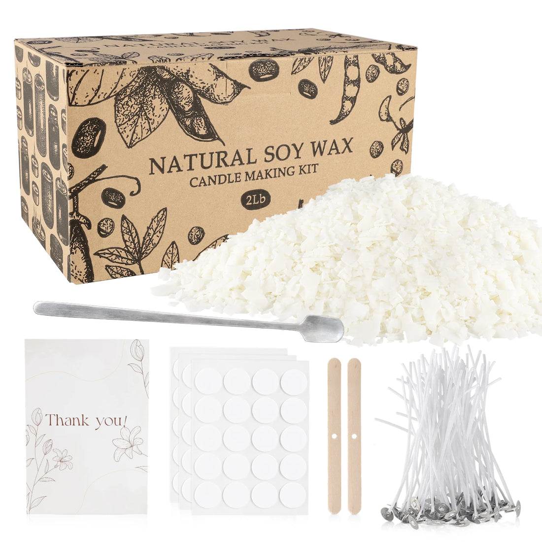 1 Set of 2 Pounds of Soy Wax Cotton Core Making Set, Suitable for Adults, Beginners, DIY Crafts Set, Making Wax Supplies for Candle Making Container Candles, Cup Wax, Aromatherapy Candles, DIY Wax and Other DIY Handicrafts.