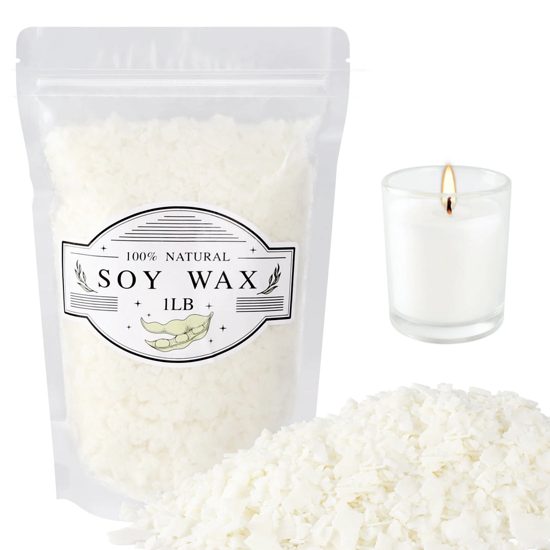 1 lb Soy Wax Flakes, DIY Handmade Raw Materials, High-Quality Natural Soy Wax Wax, Mild and Non-Irritating, Suitable for Learning and Making Candles for Beginners. No Open Flame Heating.