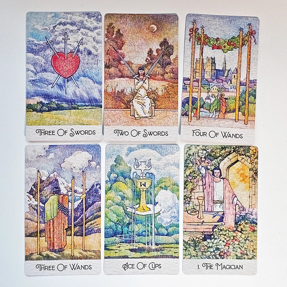 Printed on 350GSM Double-embossed Cardstock 12*7cm Rediscovered Classic Tarot Deck 78 Pcs Tarot Cards Drawn with Ball Pens