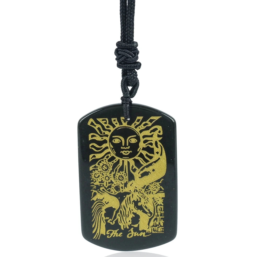 Natural Obsidian Tarot Cards Pendant Wealth Amulet Major Arcana Divination Charm Jewelry Star Moon Knight Empress Women Necklace