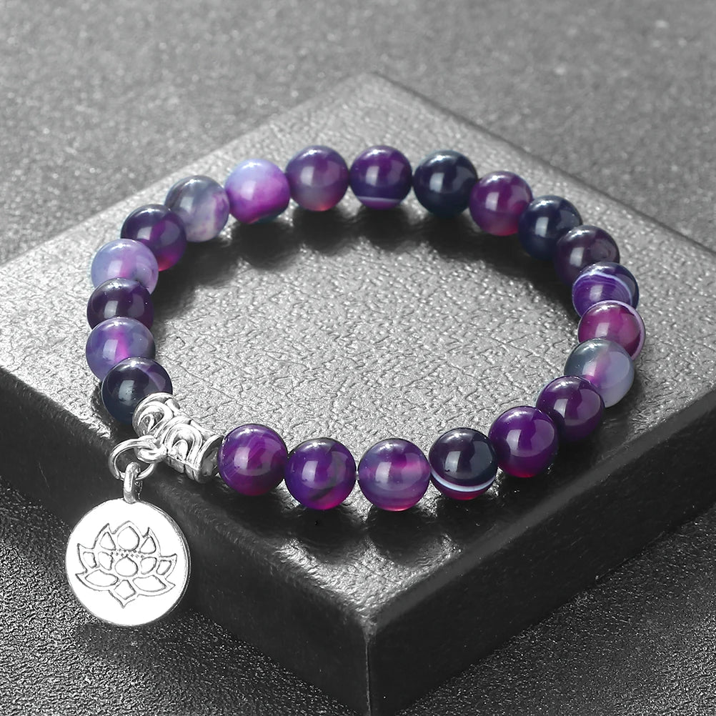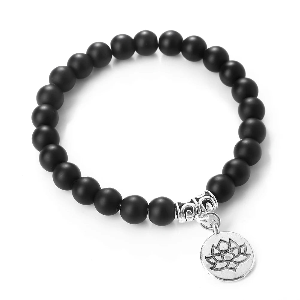 Charm Lotus Pendant Bracelet Tiger Eye Stone Malachite Beaded Bracelet for Women Men Mala Yoga Bangles Friendship Jewelry Gift