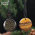 Natural Crystal Quartz Mysterious Nordic Goethe Futhark Runes Viking Compass Vegvisir Reiki Energy Pendant Necklace For Jewelry