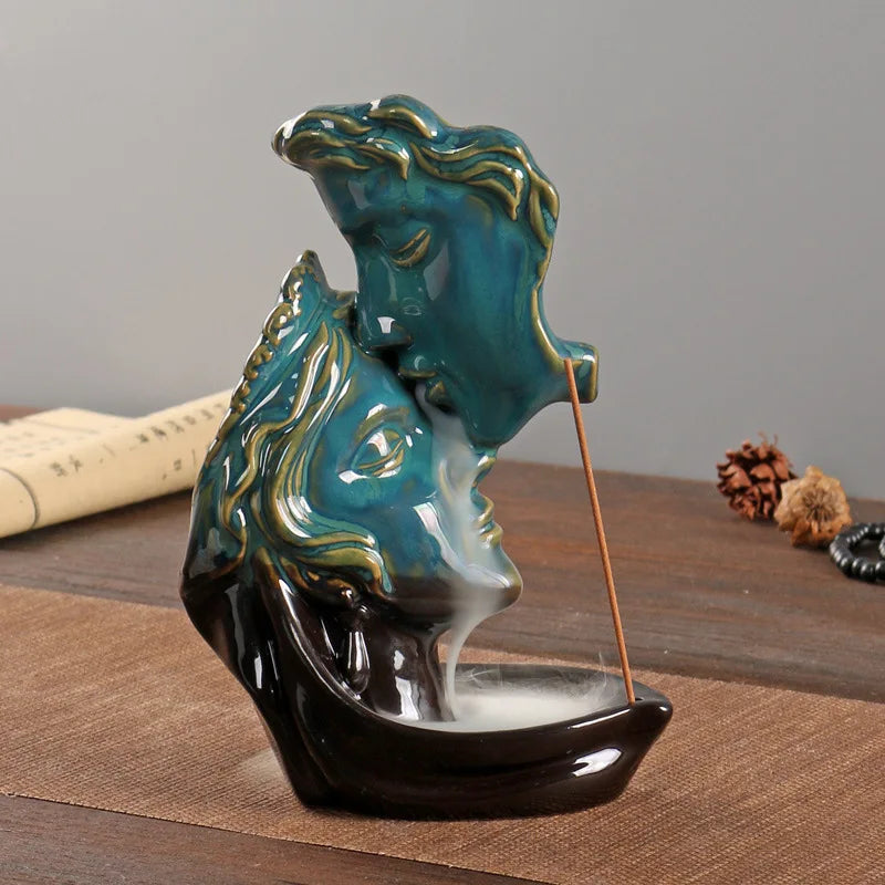 Ceramic Kiss Deep Blue Backflow Incense Burner, Home Decoration Accessories Aroma Diffuser Backflow Incense Stand