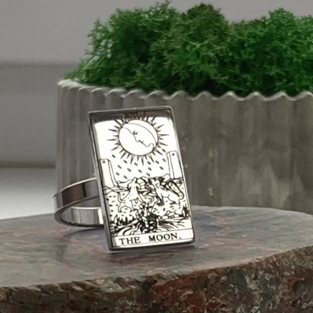 Dawapara Tarot Card Golden Ring for Women Stainless Steel Vintage Wedding Couple Rings Horoscope The Major Arcana Jewelry