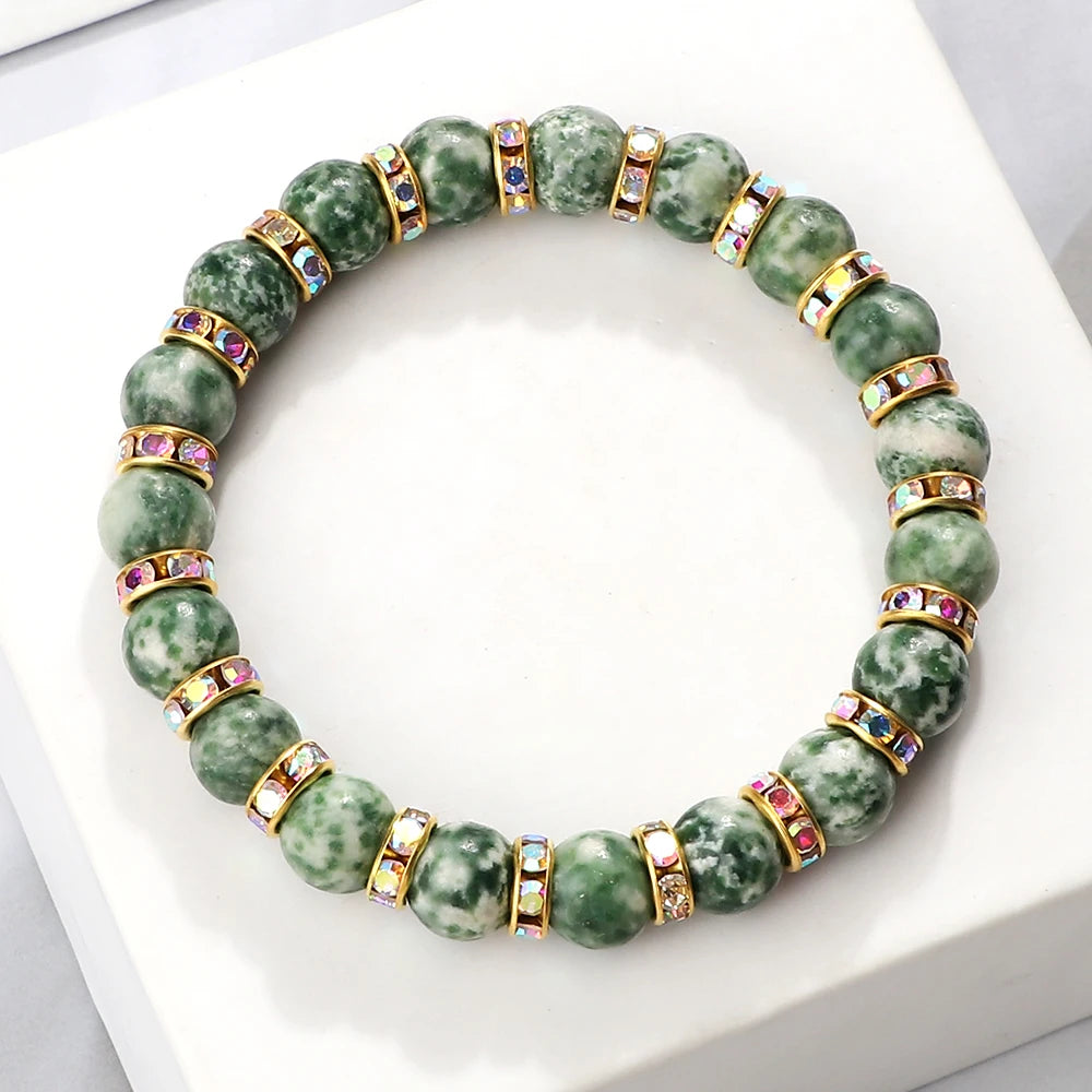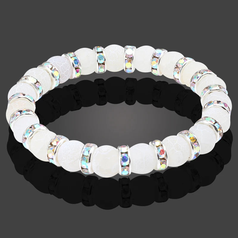 shshd Natural Stone Bracelet White Pink Blue Rhinestone Charm Crystal Beaded Bracelets&Bangles for Women Fashion Elastic Jewelry