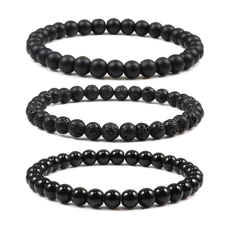Natural Stone Elastic Bracelet 6mm Charm Men Black Lava Blue Beads Strand Bracelets for Women Yoga Meditation Jewelry pulseira