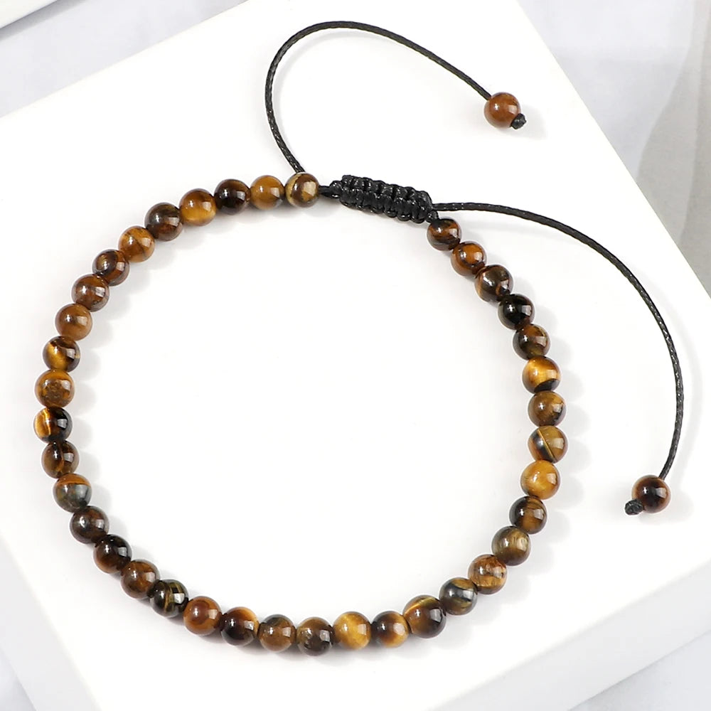 Natural Tiger Eye Bracelet Handmade Mini 4mm Beads Bracelets Braided Bangles for Women Men Energy Health Protection Jewelry Gift