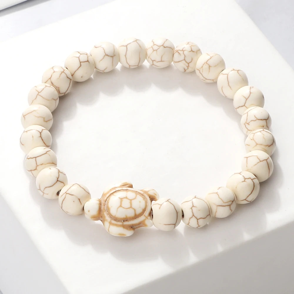 Summer Sea Turtle Bracelets Charm Tortoise Bracelets Men 8mm Natural Stone Round Beads Elasticity Party For Women Bangle Jewelry