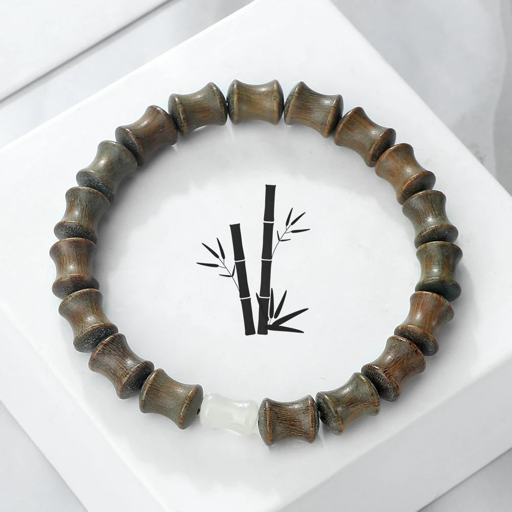 Natural Sandalwood Black Rosewood Beaded Bracelet Bamboo Joint Shape Wooden Beads Stretch Bangles Vintage Men Meditation Jewelry