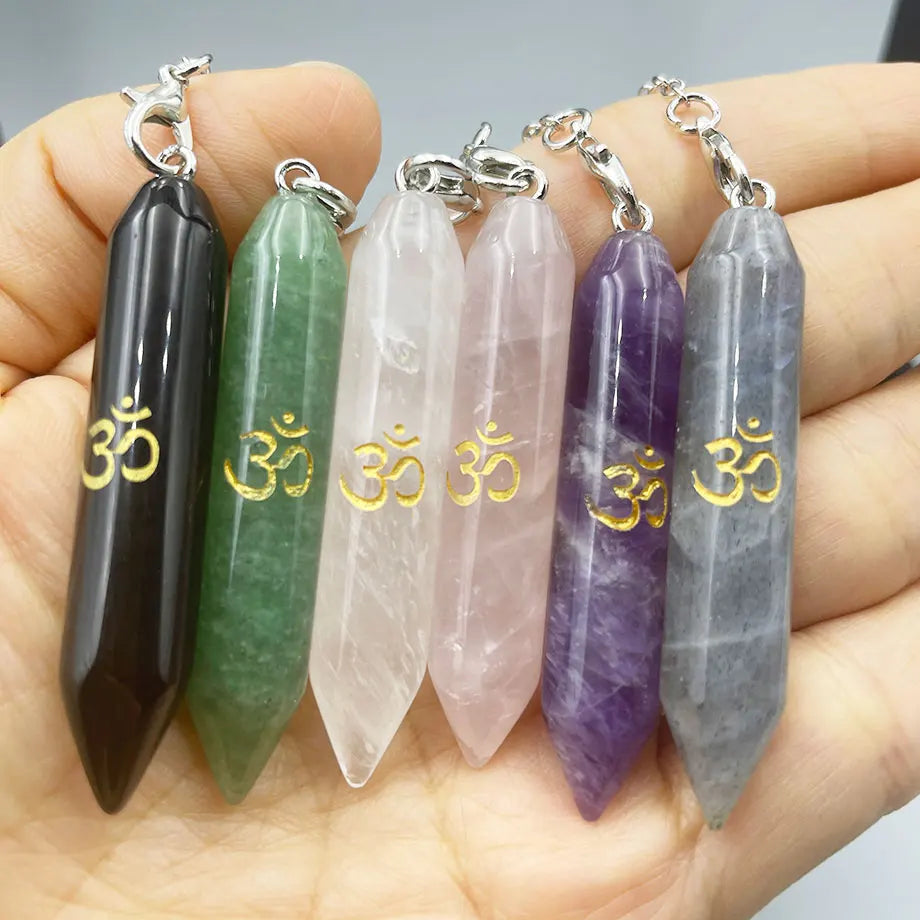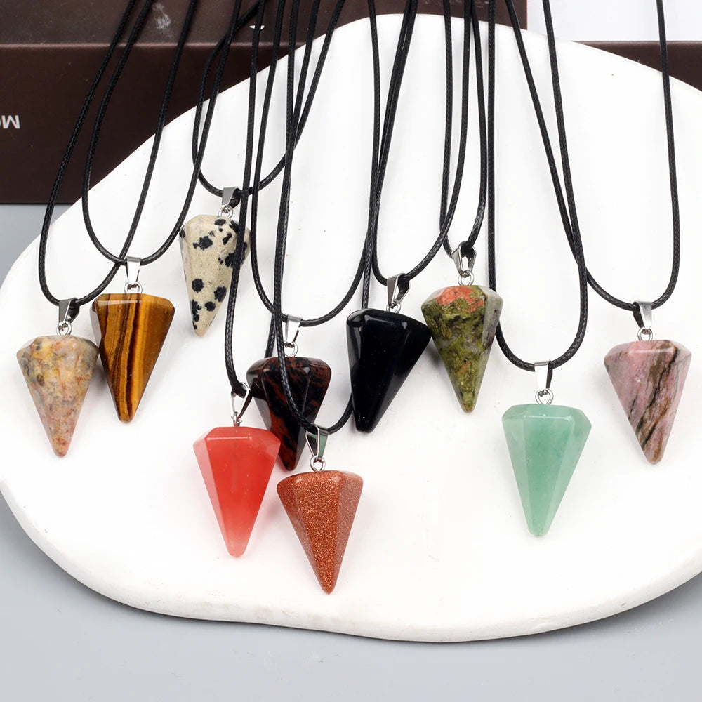 Natural Stone Hexagonal Cone Spirit Pendulum pendant necklace Set Healing meditation Protection Stone Love Pendant Necklaces