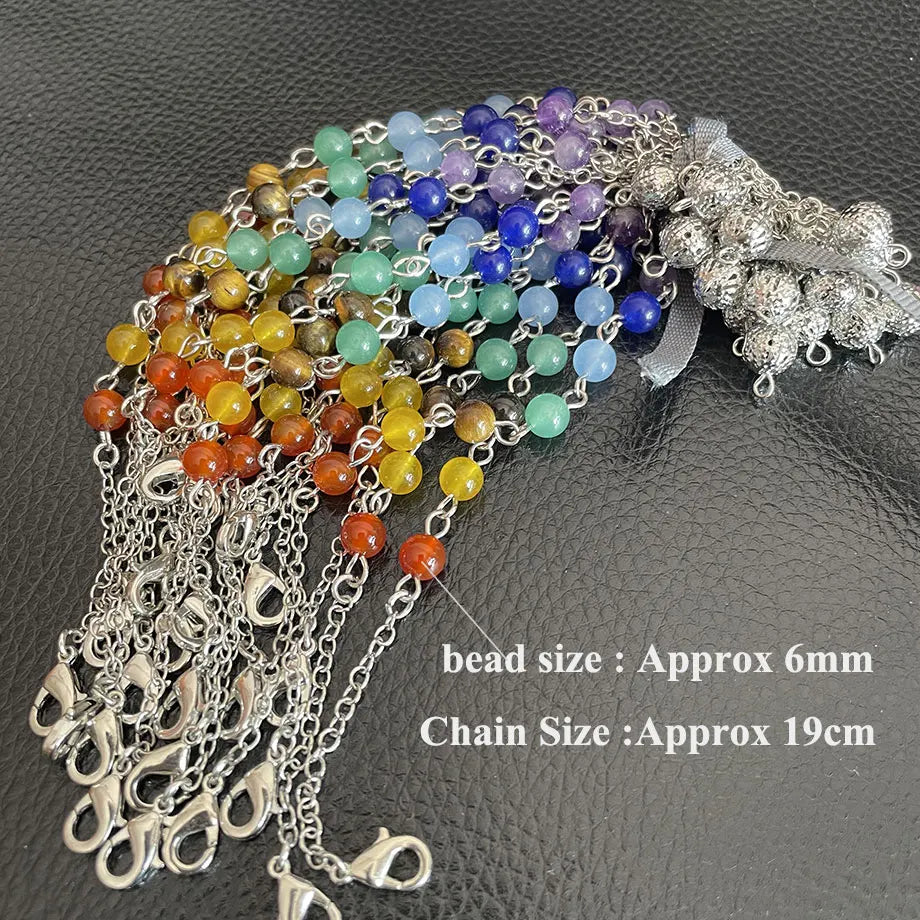 20pcs / Lot Bulk Pendulums Chains with Lobster Claw Wholesale 7 Chakra Stone Bead Charm Chain Only for Pendulum Accessories X037