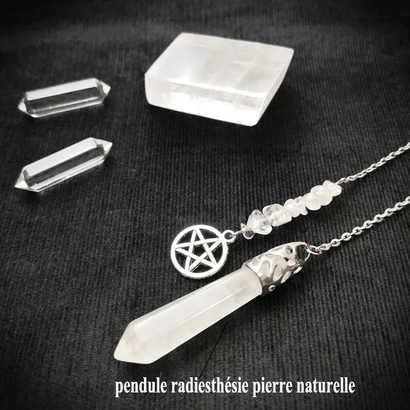 Natural Gem Stone Crystals Pendulum for Divination Dowsing White Clear Quartz Pendant Star of David Hexagram Chain Pendulo X190