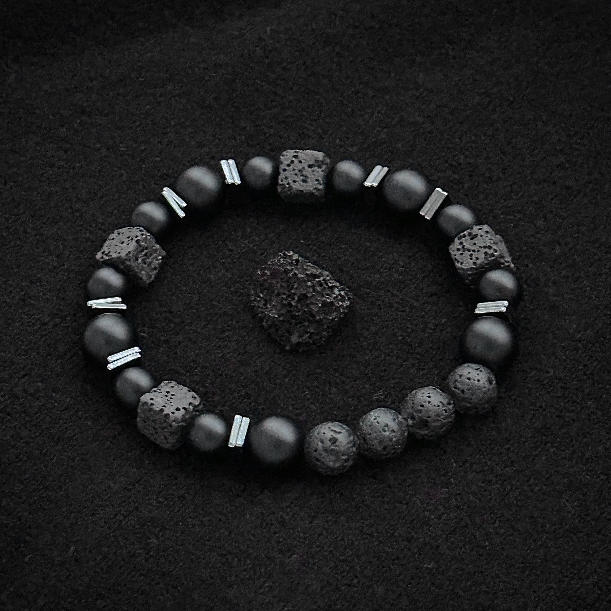Natural Matte Black Onyx with Cube Lava Bracelet,Balance Bracelet, Natural stone Bracelet,gift for man/boyfriend,1pc