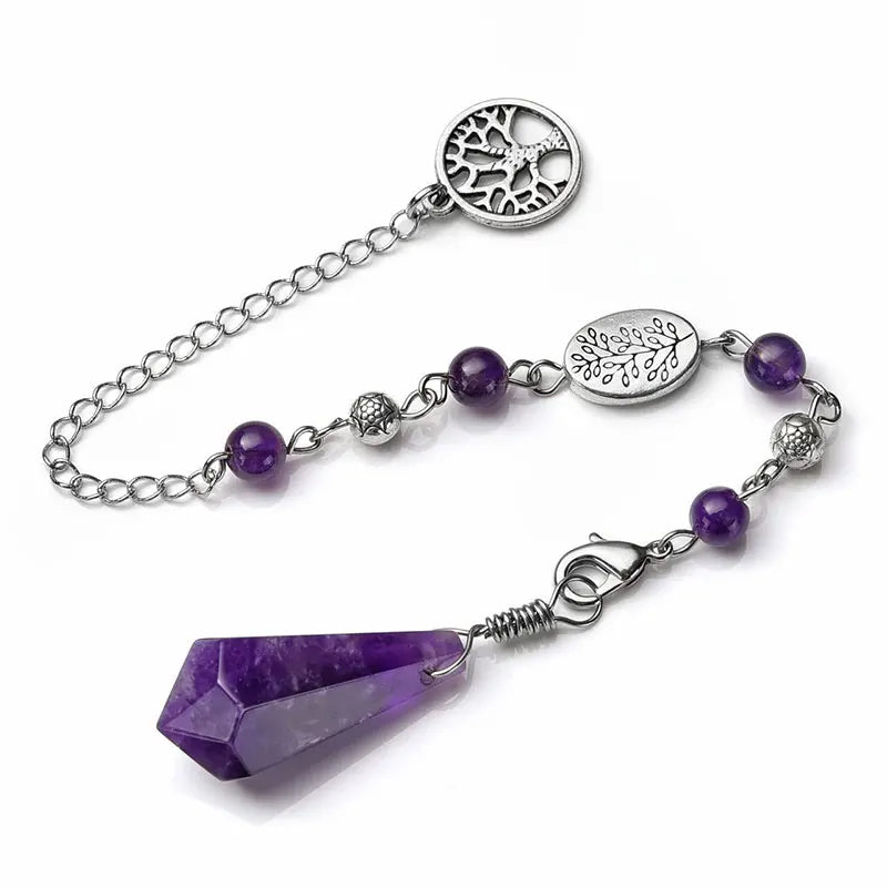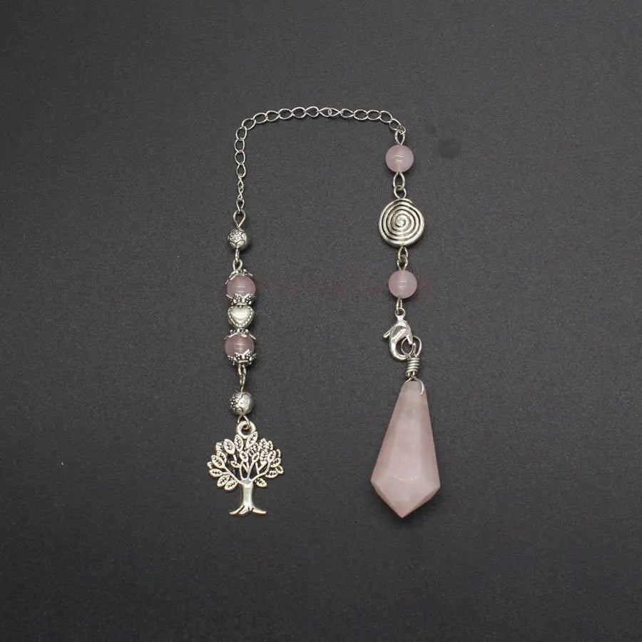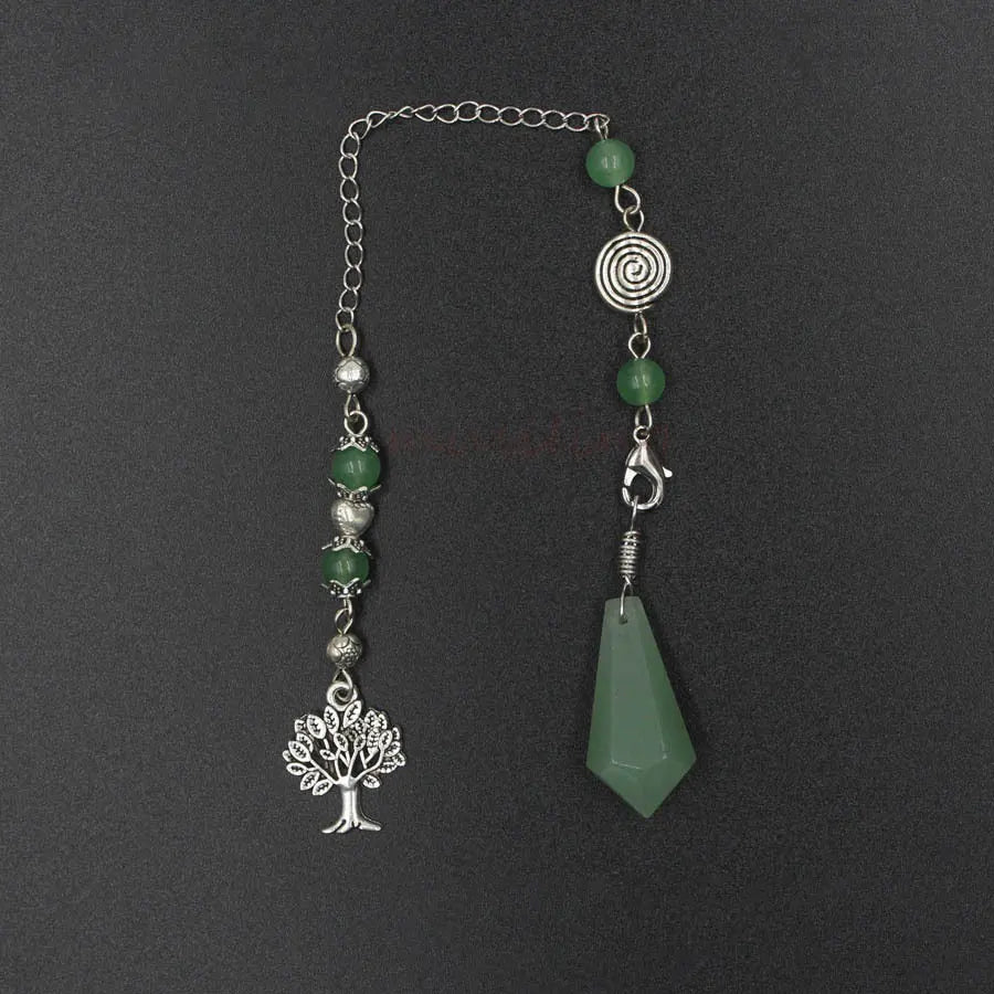 Natural Stone Green Aventurine Dowsing Pendulum Scrying Divination Healing Hexagonal Pointed Tree of Life Crystal Pendulums X058