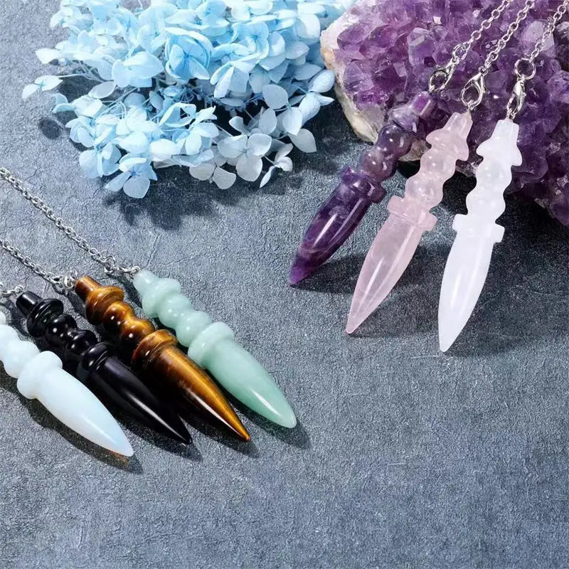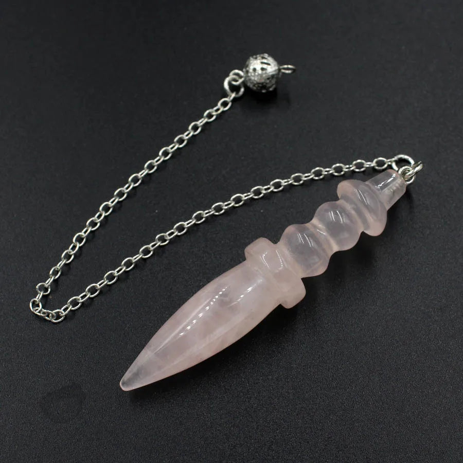Natural Stone Pendant Egyptian Crystal Pendulum for Divination Dowsing Reiki Pink Clear Quartz Amethysts Black Onyx Pendulo X130