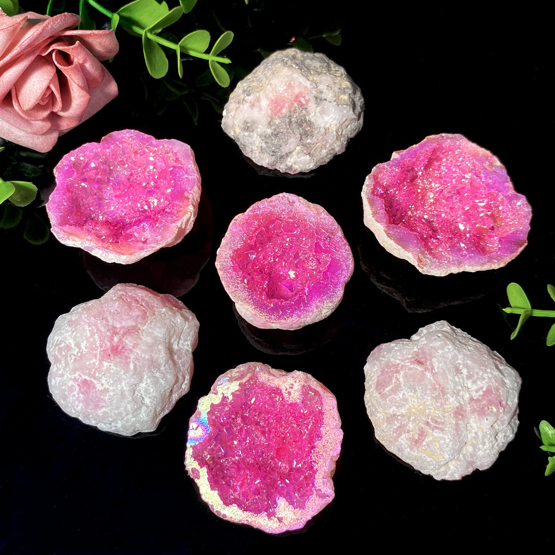 Random 1PC High Quality Pink Aura White Agate Natural Crystal Raw Stone,Mineral Crystal,Family And Friends Gift,Decoration