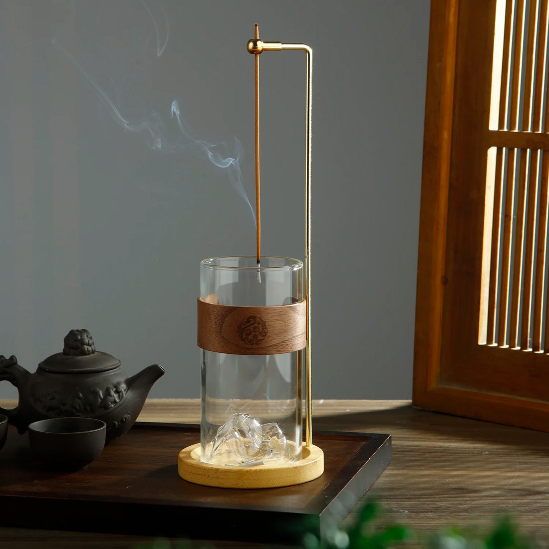 Glass Mountain Incense Holder for Sticks Incense Sticks Holder with Cord Lock Anti-Ash Flying Incense Burner with Ash Catcher