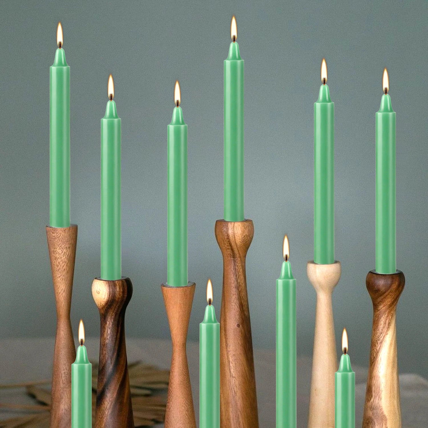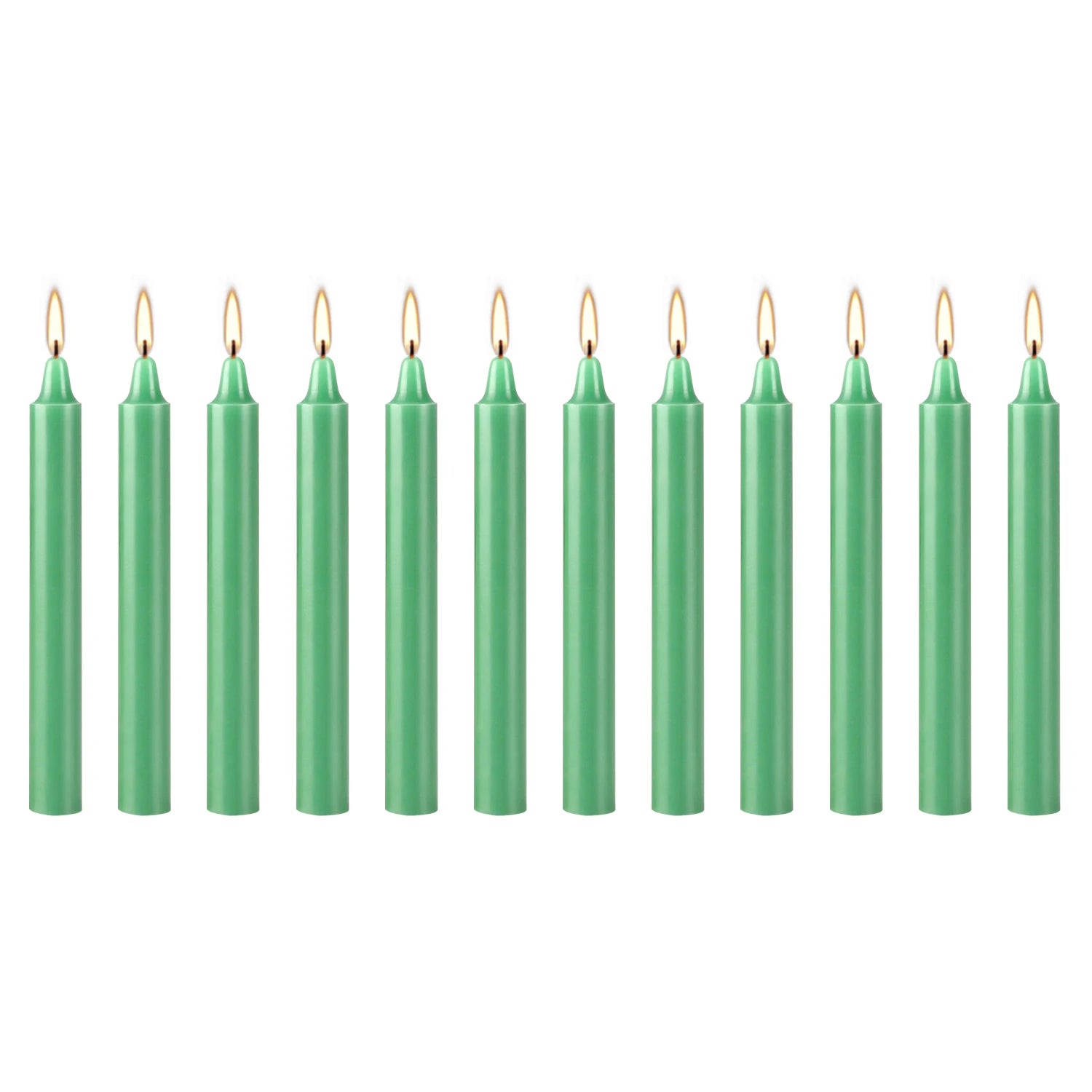 12 Pcs 3.9*0.4in (10.1*1.2cm) Green Small Wax, Drip-Free, Smoke-Free, Fragrance-Free Household Dinner Candles, Hand-Pulled, High-Quality, Suitable for Various Places, Various Holidays.