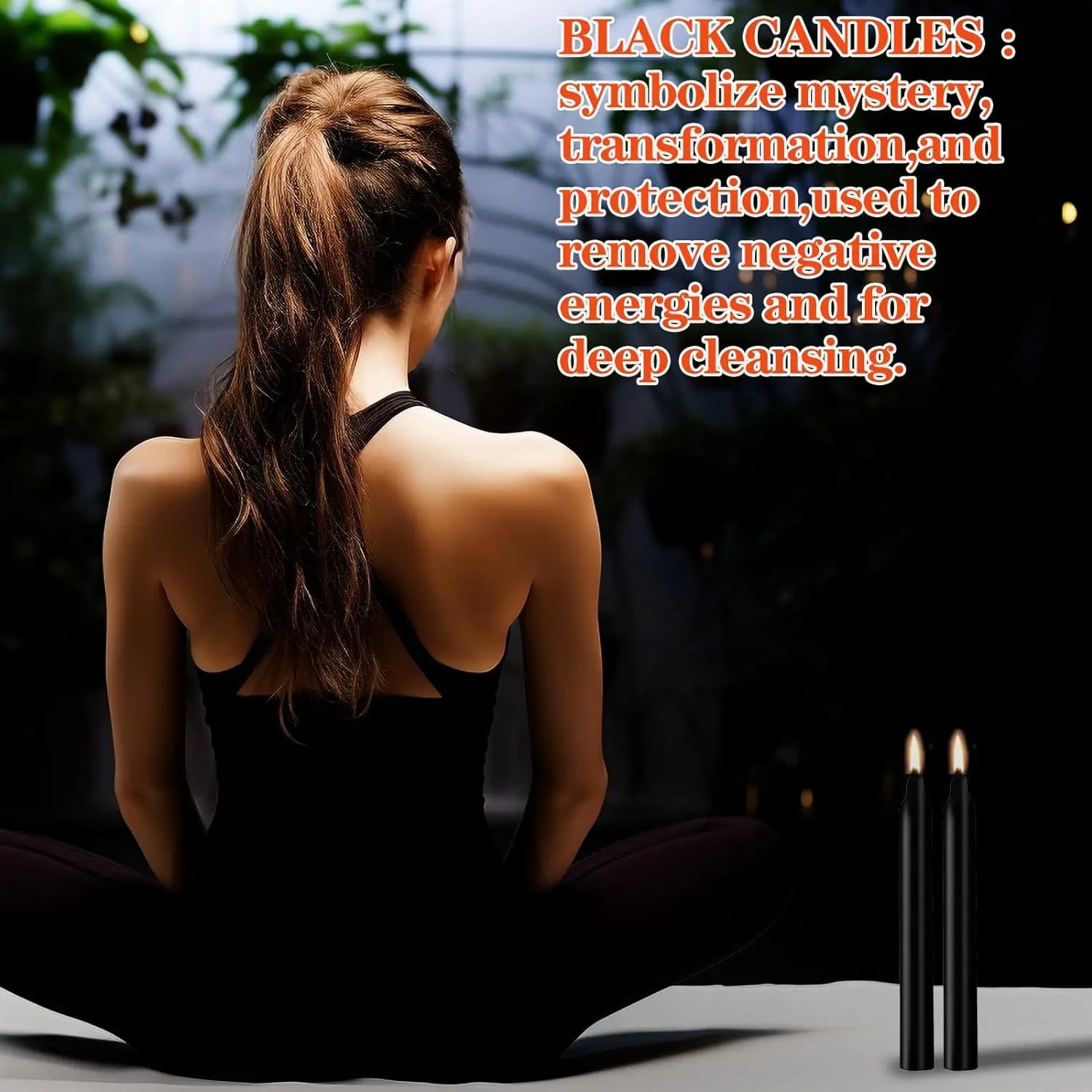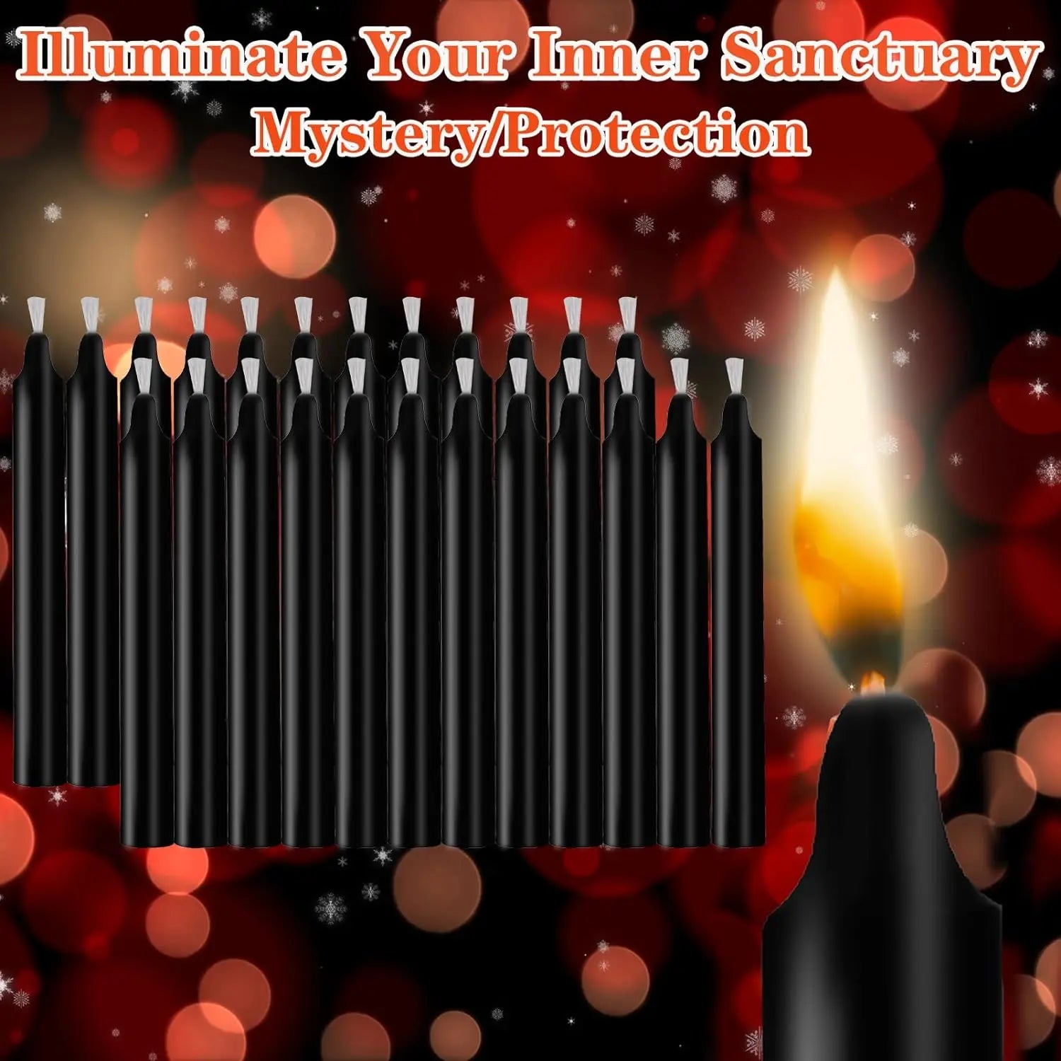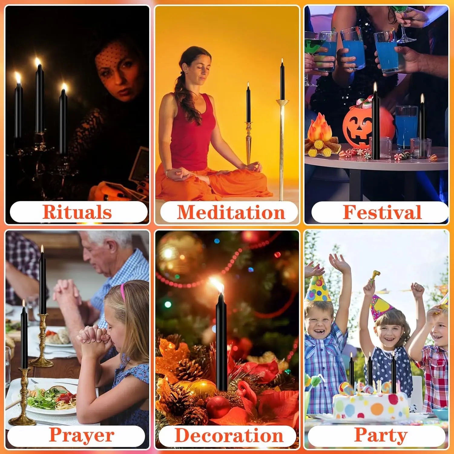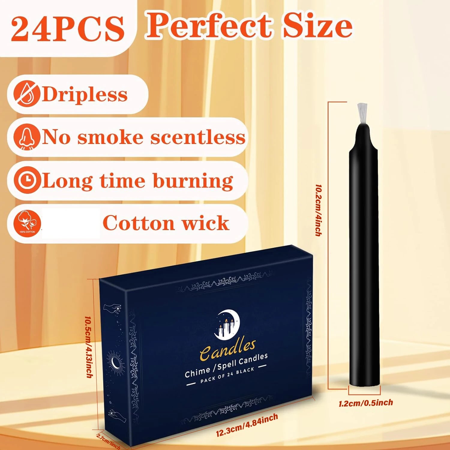 24 Pcs 4* 0.5in (10.2*1.2cm) Black Small Rod Wax, Drip-Free, Smoke-Free and Fragrance-Free Household Dinner Candles, Hand-Pulled, High-Quality, Suitable for All Places, Various Holidays.