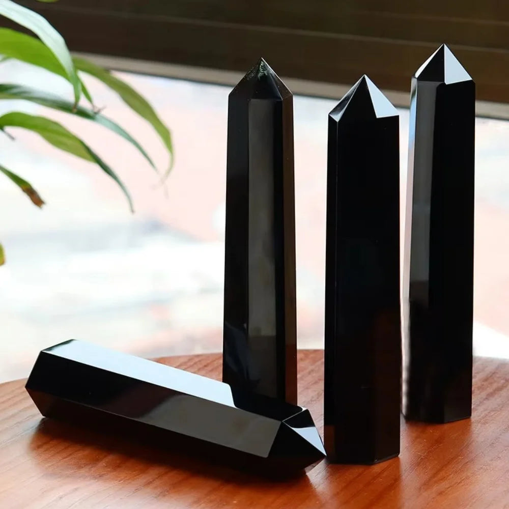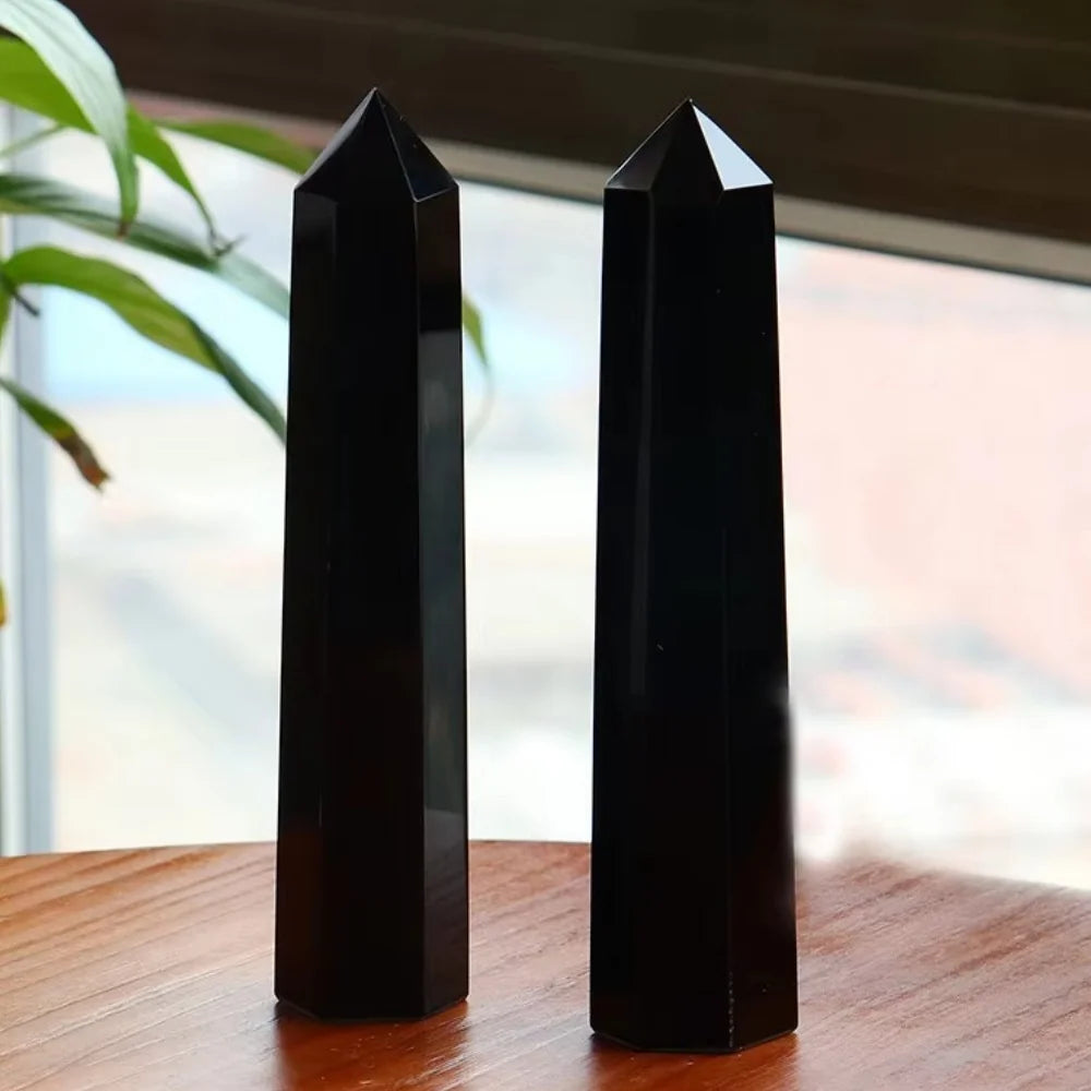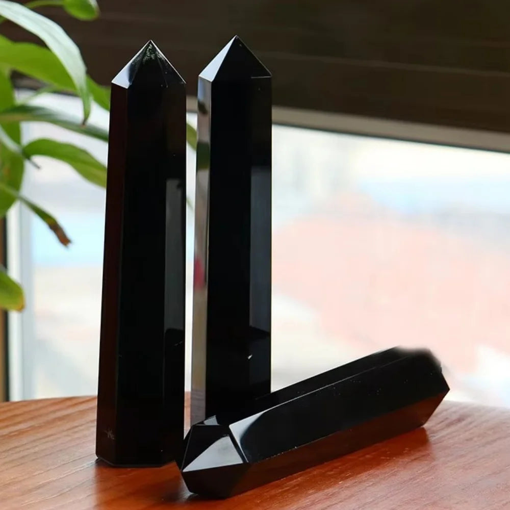 40-110mm Natural Obsidian Crystal Point Obsidian Healing Stone Obelisk Tower Quartz Wand Ornament for Home Decor Energy Stone