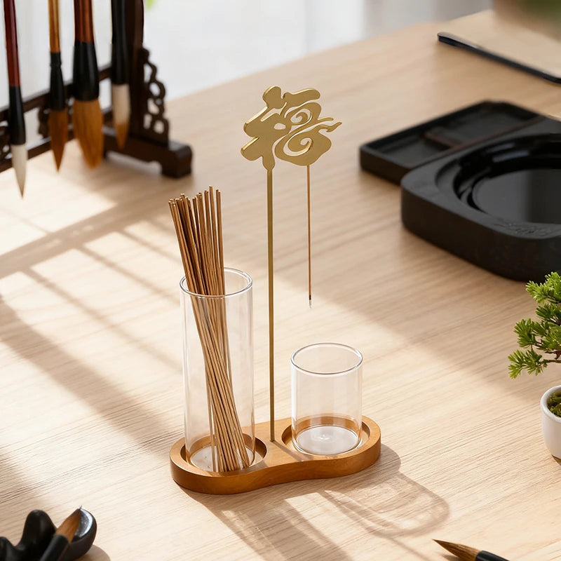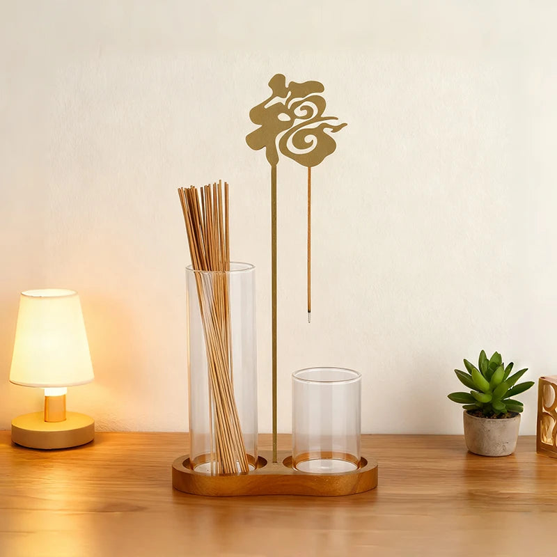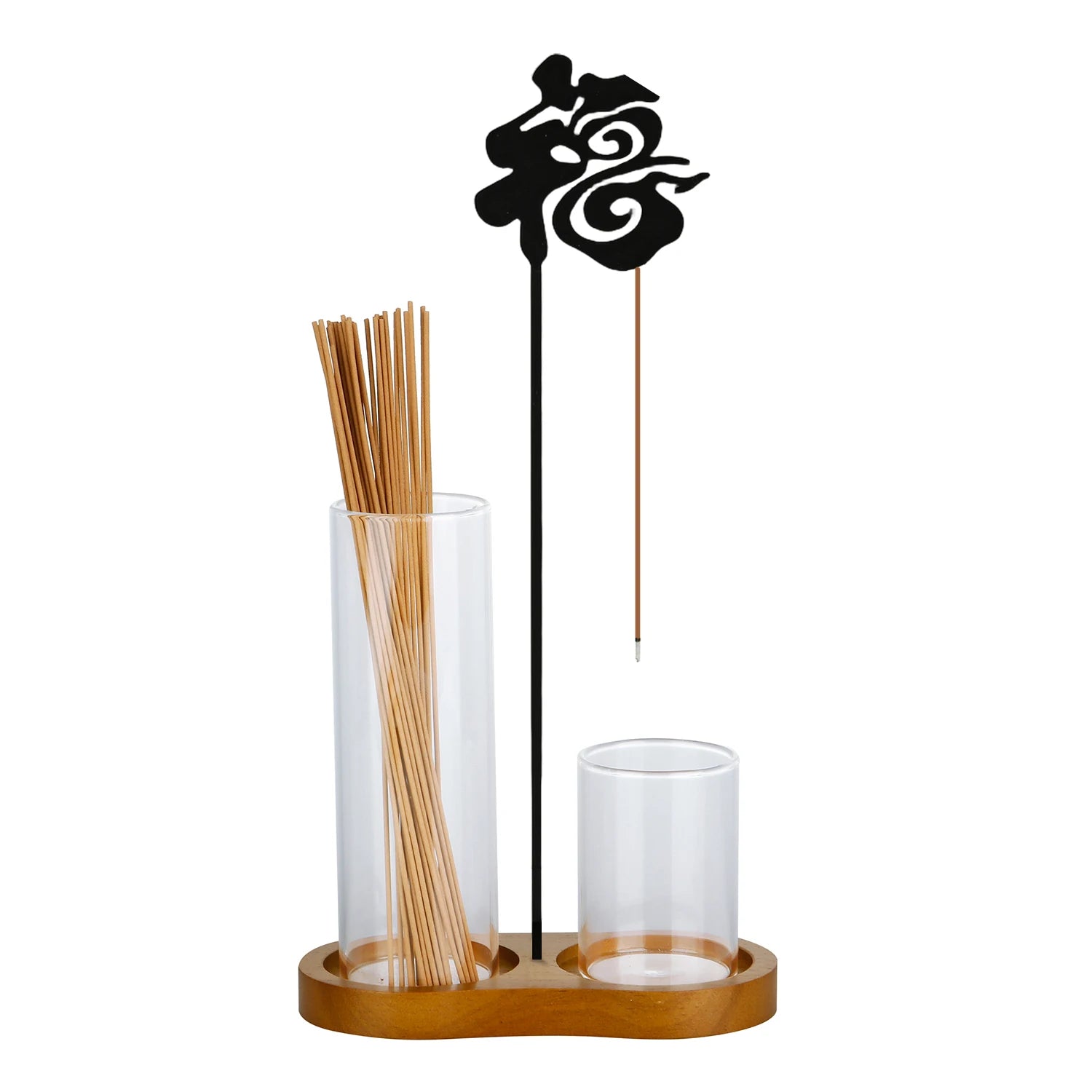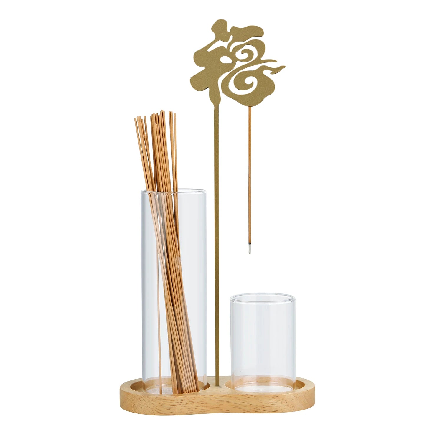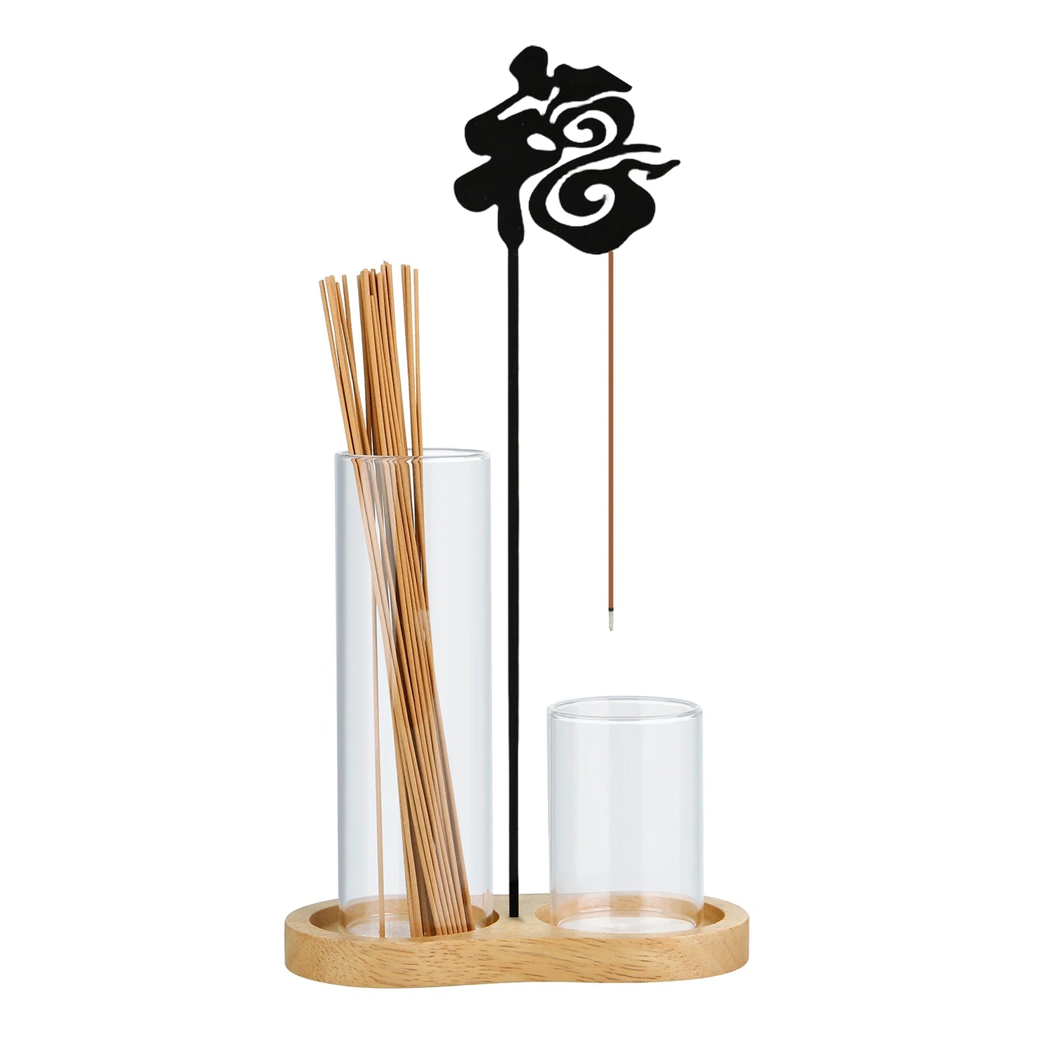 Chinese Fu Incense Holder Anti-Ash Flying Incense Burne with Glass Ash Catcher and Incense Sticks Organizer Home Decor