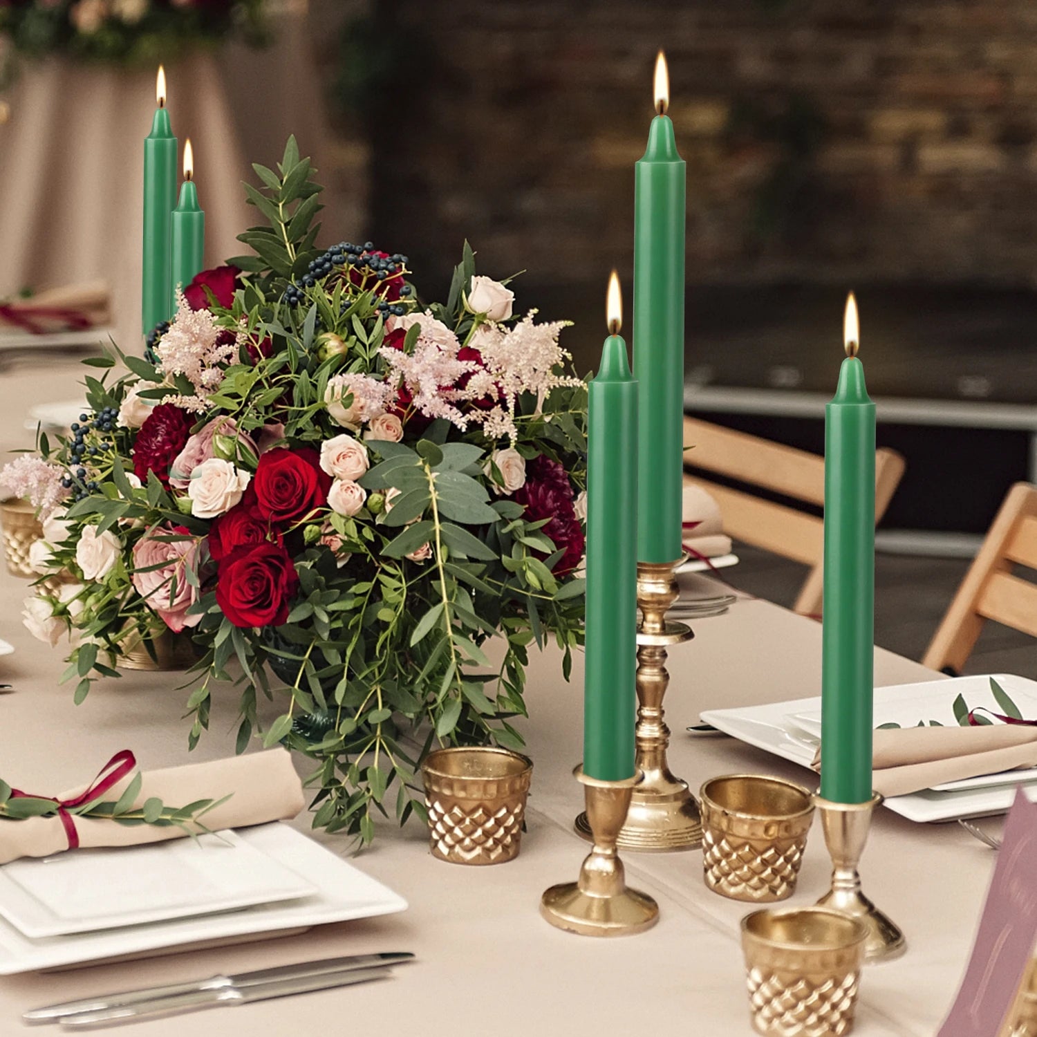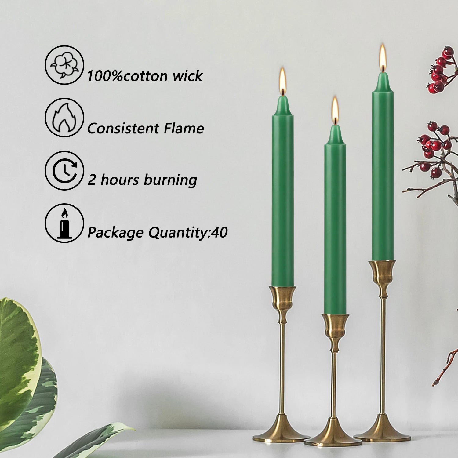 Green 40 Pcs 4Inch Rod Wax, Drip-Free, Smoke-Free, Fragrance-Free, Home Dinner Candles, Hand-Pulled, High-Quality, Suitable for Church, Family, Wedding, Party, Seasonal Celebrations, Emergency Situations and Home Decoration,