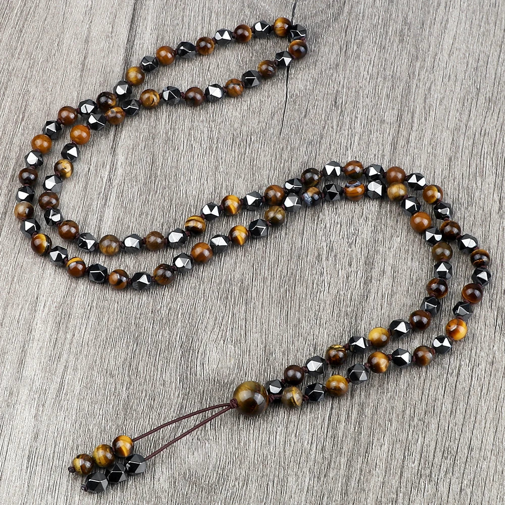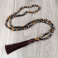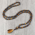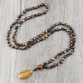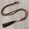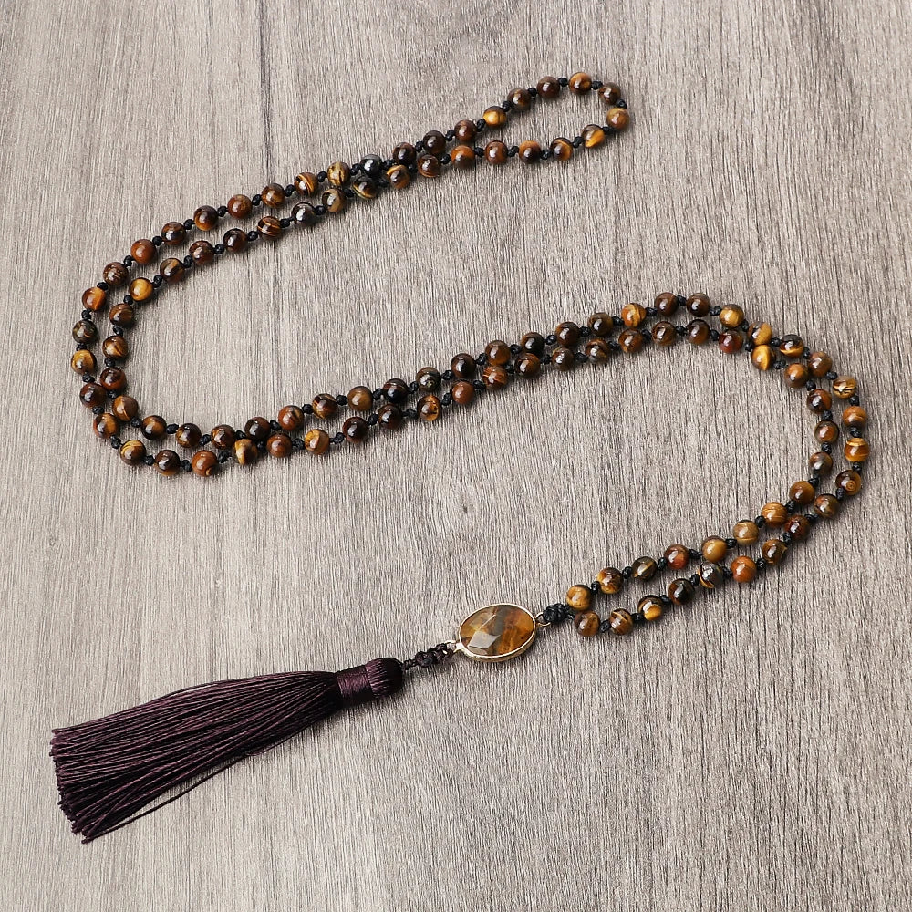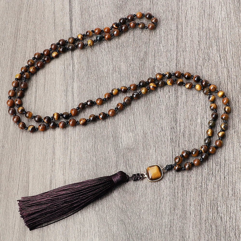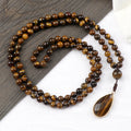 Vintage Design Tiger Eye Stone Necklace Handmade Knotted 6mm 108 Mala Beads Necklaces Drop Pendant Women Men Yoga Jewelry Gifts