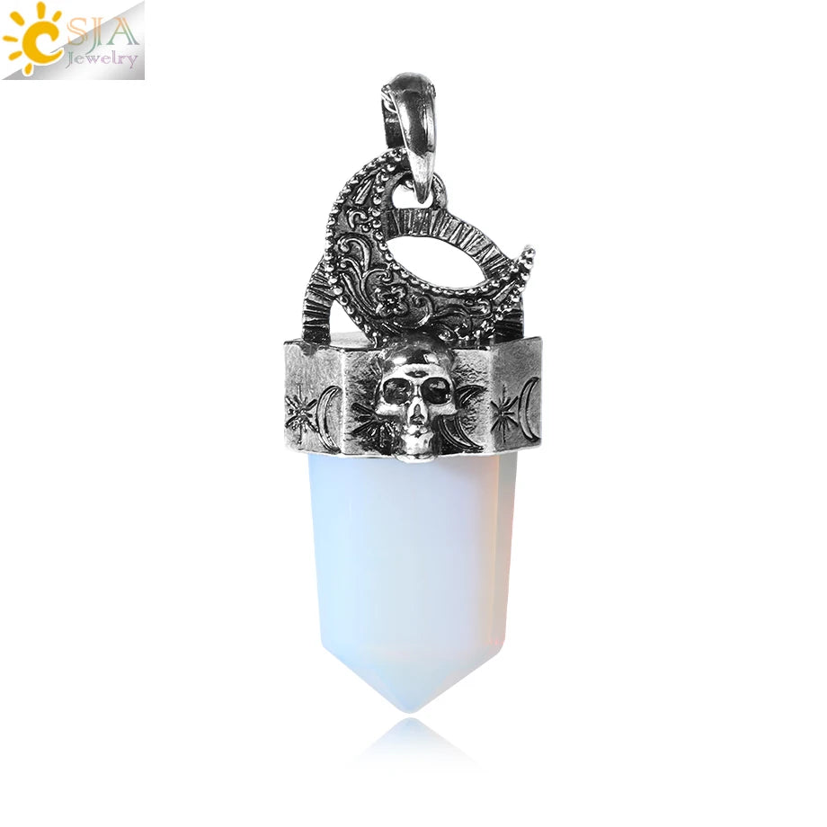 Vintage Natural Stone Necklace Pendant for Men Skull Reiki Moon Pendant Healing Amethysts Labradorite Crystal Necklaces H464