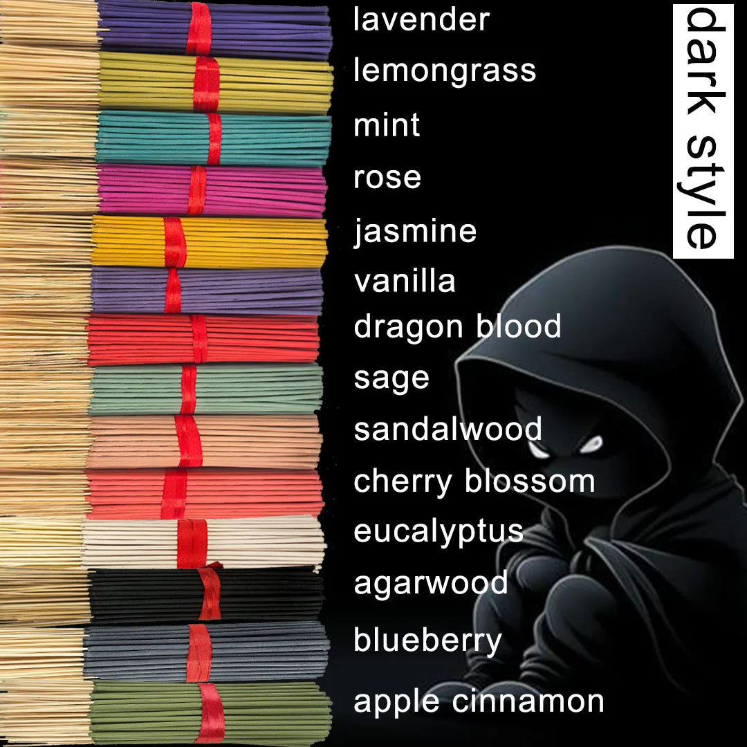 Dark Series 5 Types of 8.7-Inch Bamboo Incense Sticks, Dark-Themed Main Elements Include Scarlet, Desolation, Darkness, Pale, Deep Blue, Scents Include Lavender/Lemongrass/Mint/Rose/Jasmine/Vanilla/Dragon's Blood/Sage/Sandalw