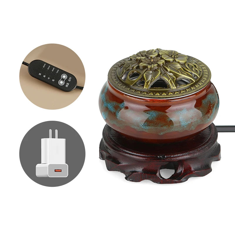 Electronic Incense Burner Ceramic Essential Oil Burner Timing Adjustable Temperature Wax Melts Warmer Agarwood Incense Burner
